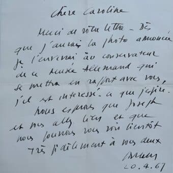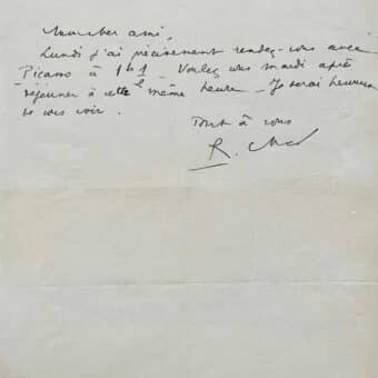 Feuillet signé conjointement par André Malraux et sa compagne Louise de Vilmorin