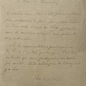 Paul Verlaine autorise Adrien Remacle à faire jouer ses « Fêtes Galantes » adaptées en drame-ballet