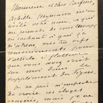 Lettre d’Henri de Toulouse-Lautrec rédigée à la hâte au crayon