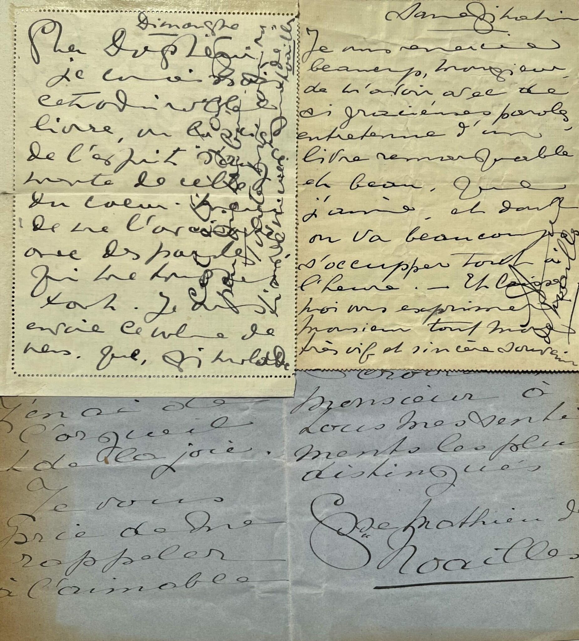 3 lettres de remerciements d’Anna de Noailles après l’envoi d’ouvrages
