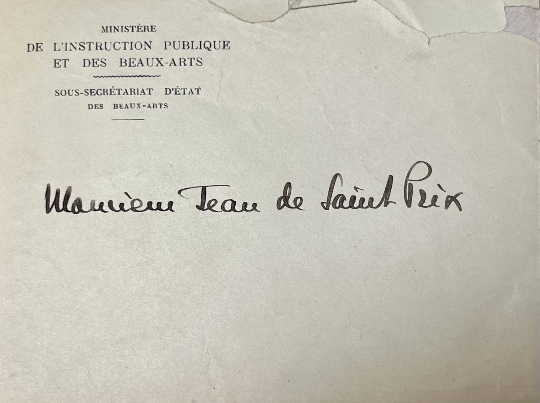 En-tête imprimé du "Sous Secrétariat d'Etat des Beaux-Arts". Enveloppe conservée.