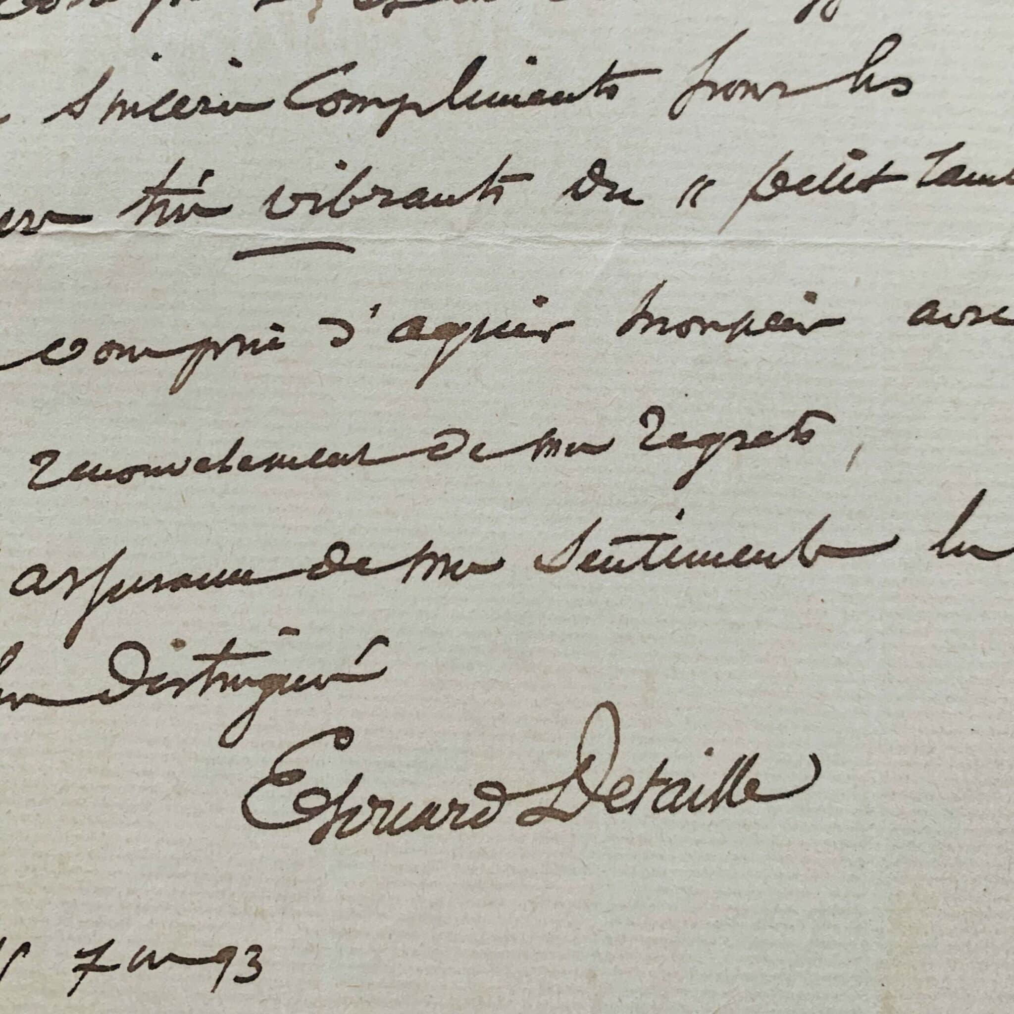 Edouard Detaille (Paris, 1848/1912)Surchargé de travail par de grandes commandes, Edouard Detaille refuse désormais, même à ses amis proches, de réaliser de petits tableaux ; il s'en explique.