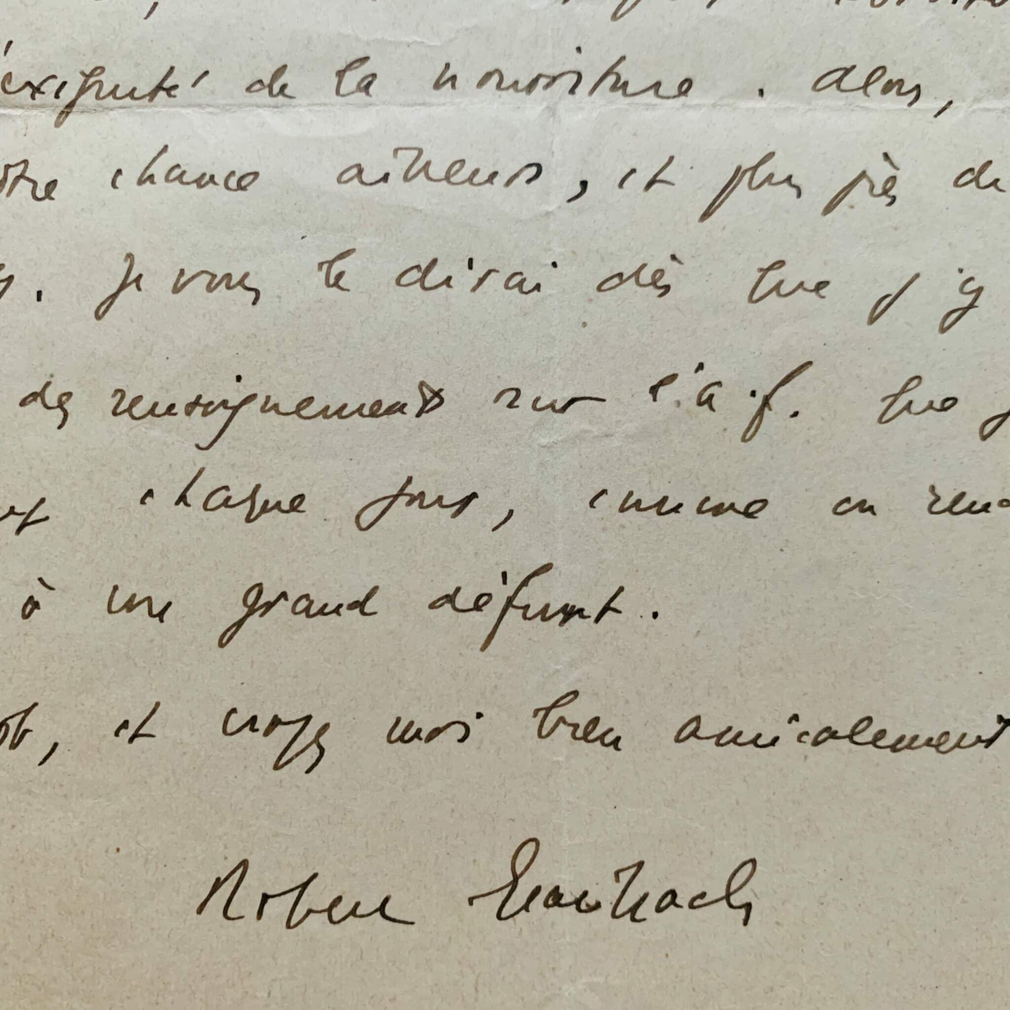 Robert Brasillach (Perpignan, 1909/1945)Après sa rupture avec Charles Maurras, qui refusera de le revoir après avoir affirmé : « Je ne reverrai jamais les gens qui admettent de faire des tractations avec les Allemands », Robert Brasillach continue malgré tout à lire l'Action Française, comme il le dit, dans cette lettre écrite de Bandol en juillet 42.