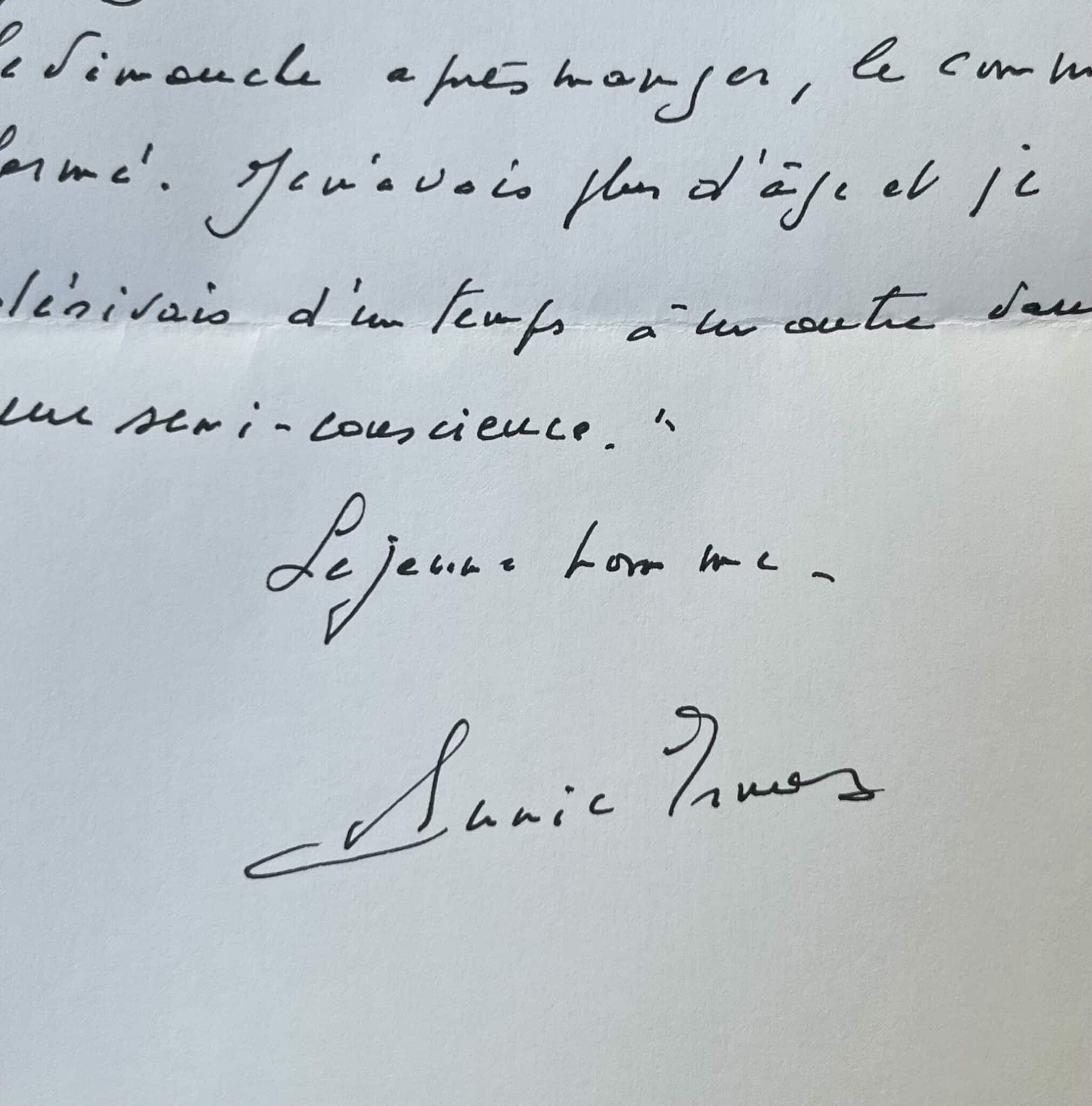 Extrait autographe signé de l’ouvrage « Jeune homme » du Nobel de littérature Annie Ernaux