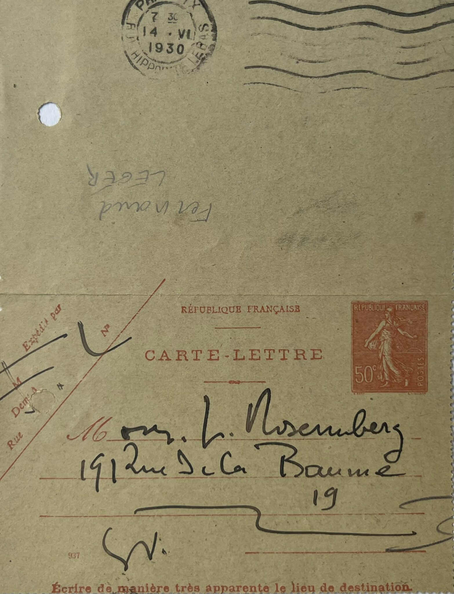 Fernand Léger présente ses excuses au marchand d’art Léonce Rosenberg