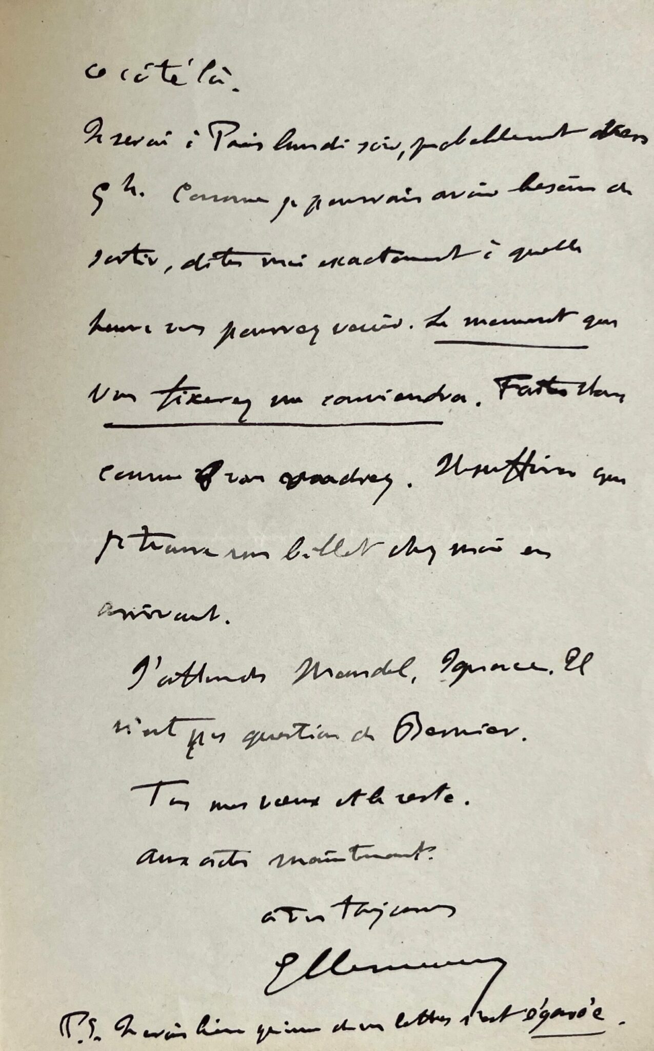 Il annonce son retour à Paris pour le lundi soir, et souhaite le voir. "Le moment que vous fixerez me conviendra".