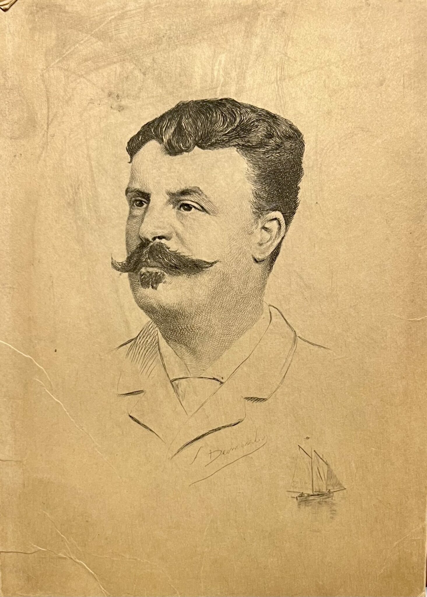 On joint un portrait de Maupassant par Desmoulins, gravé sur carte (petites défauts).