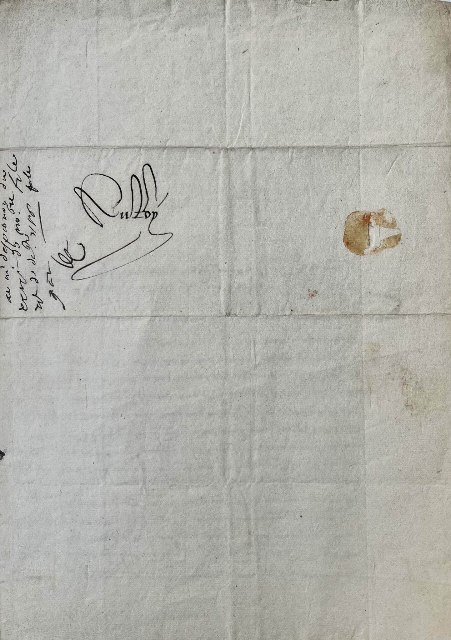 Compliment et signature autographes "Vostre tres humble tres obeissant et plus hobligee serviteur jlouis de lavalette".