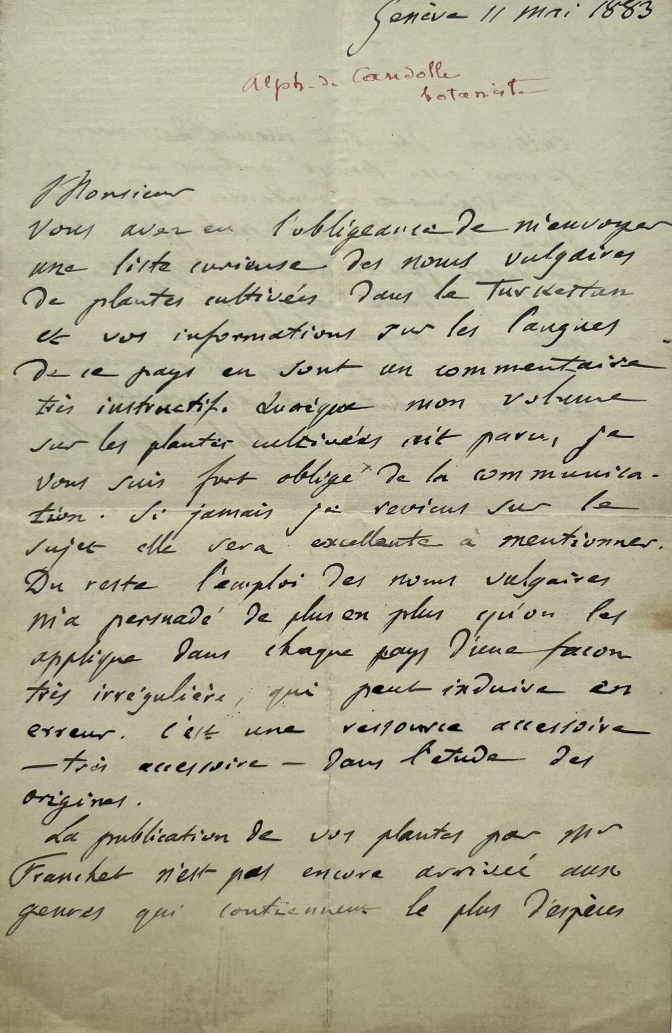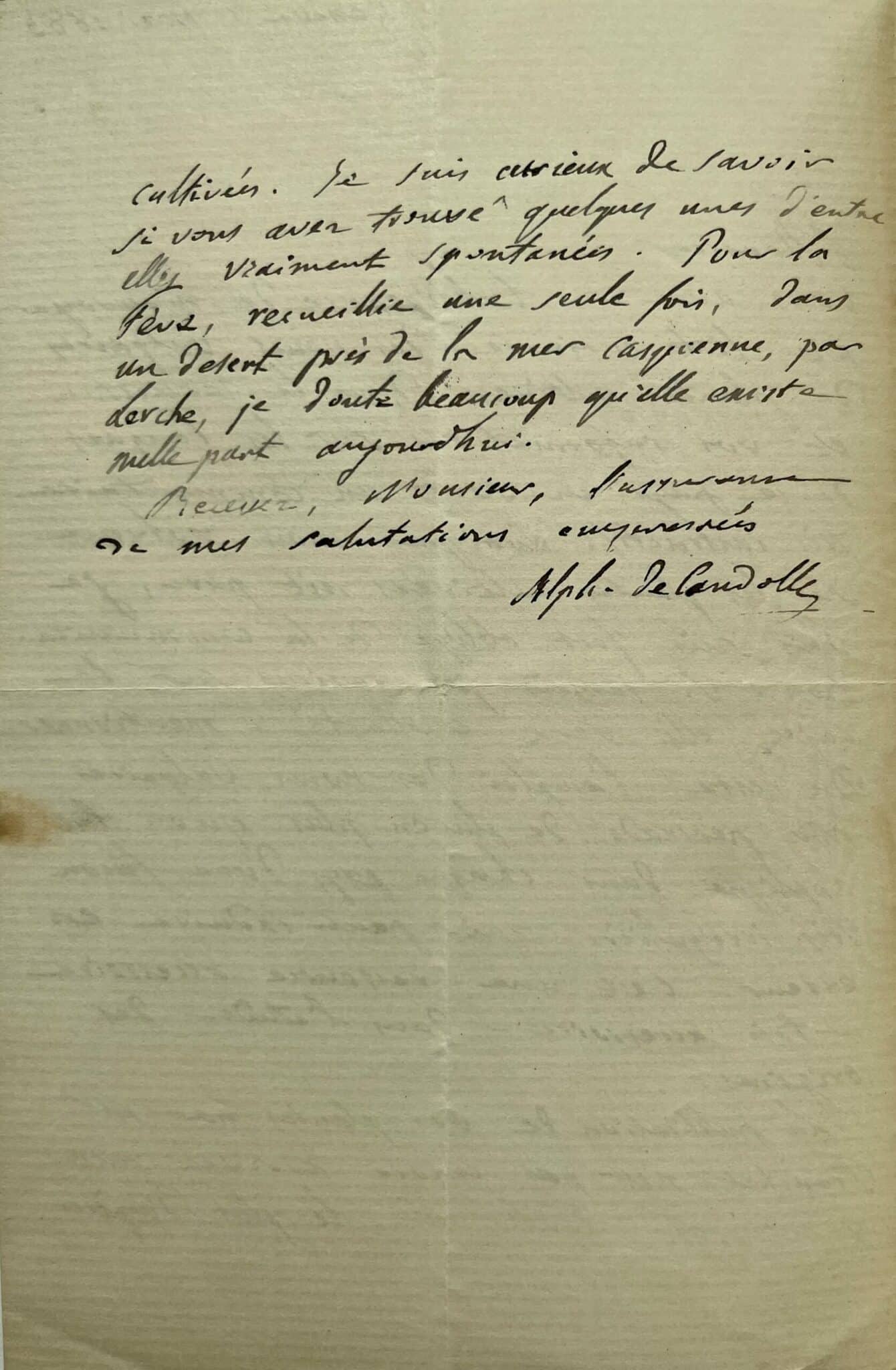 Intéressante lettre du botaniste Alphonse de Candolle au sujet de la flore du Turkestan