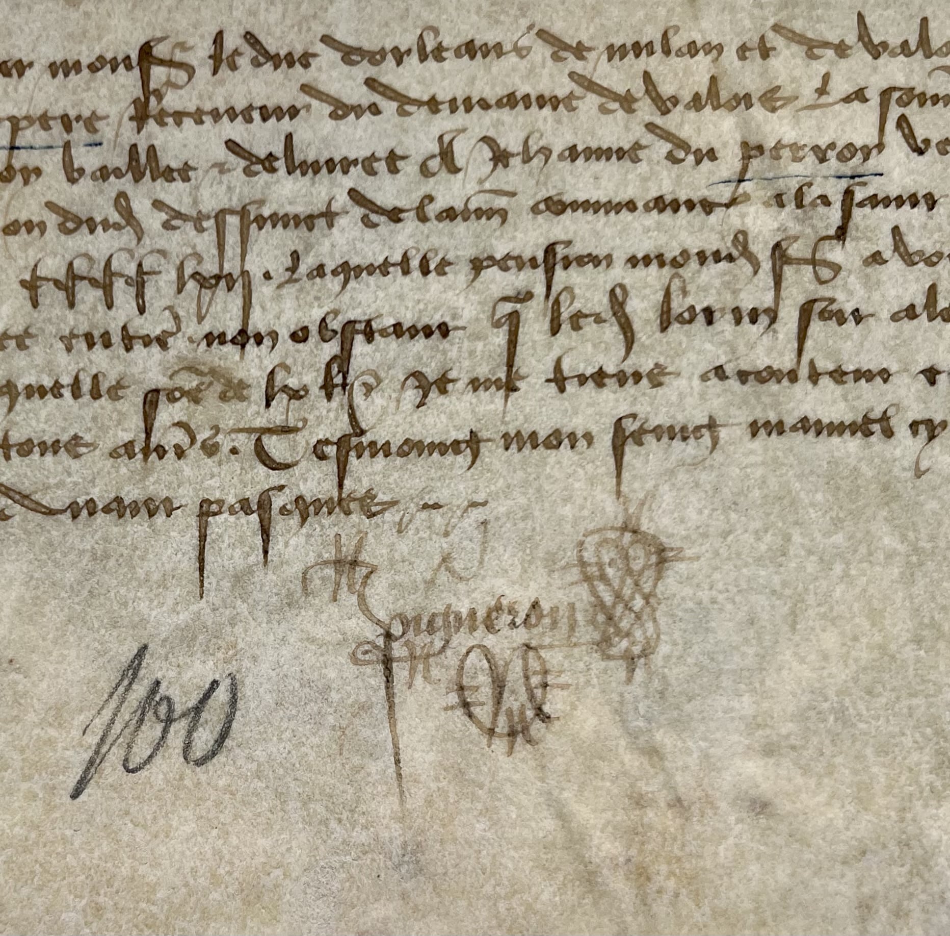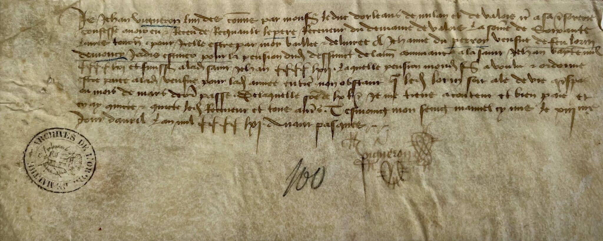 Pièce signée par Jehan Vigneron « l'un des commis par monseigneur le duc d'Orléans, de Milan et de Valois ».