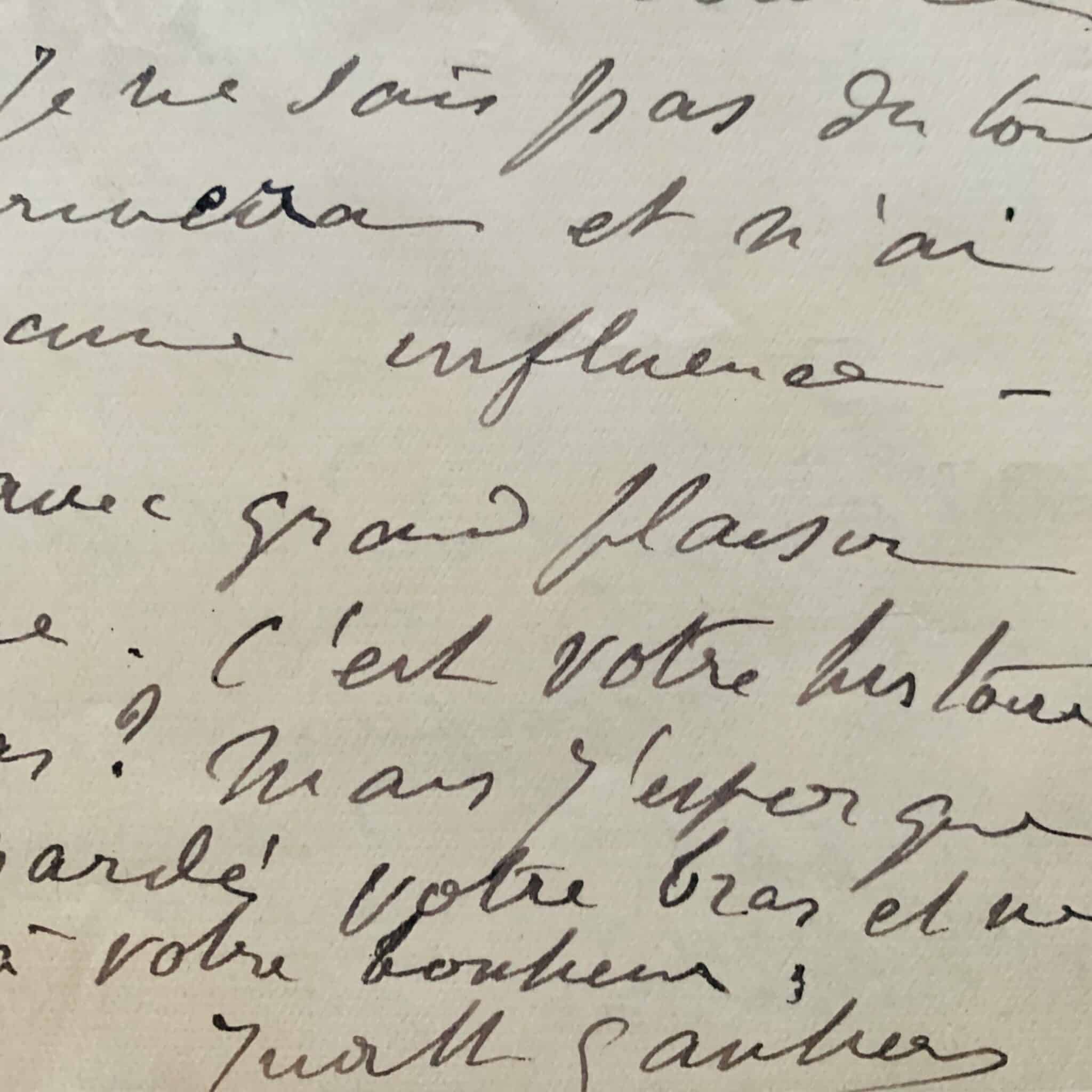 Judith Gautier (Paris, 1845/1917)Intéressante lettre de Judith Gautier, membre de l'Académie Goncourt, sur les coulisses de l'élection d'un nouveau membre, au troisième couvert, après le décès d'Octave Mirbeau. Son soutien à Joséphin Peladan ne suffira pas et c'est Jean Ajalbert qui sera élu.