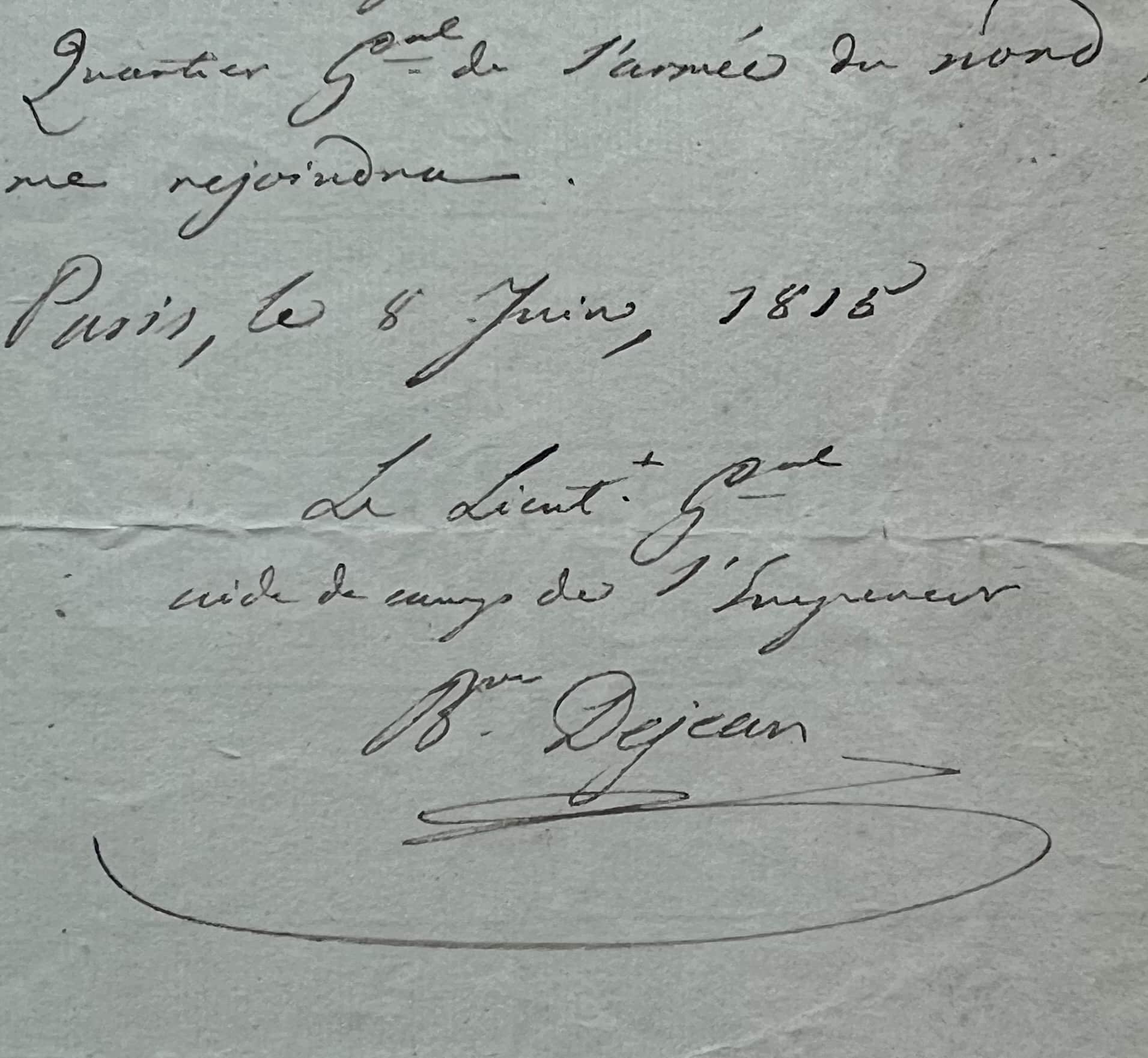 Le baron Dejean, aide de camp de l’Empereur, nomme son propre aide de camp quelques jours avant Waterloo