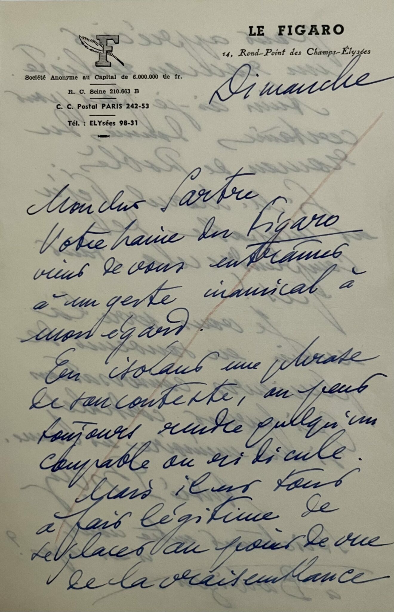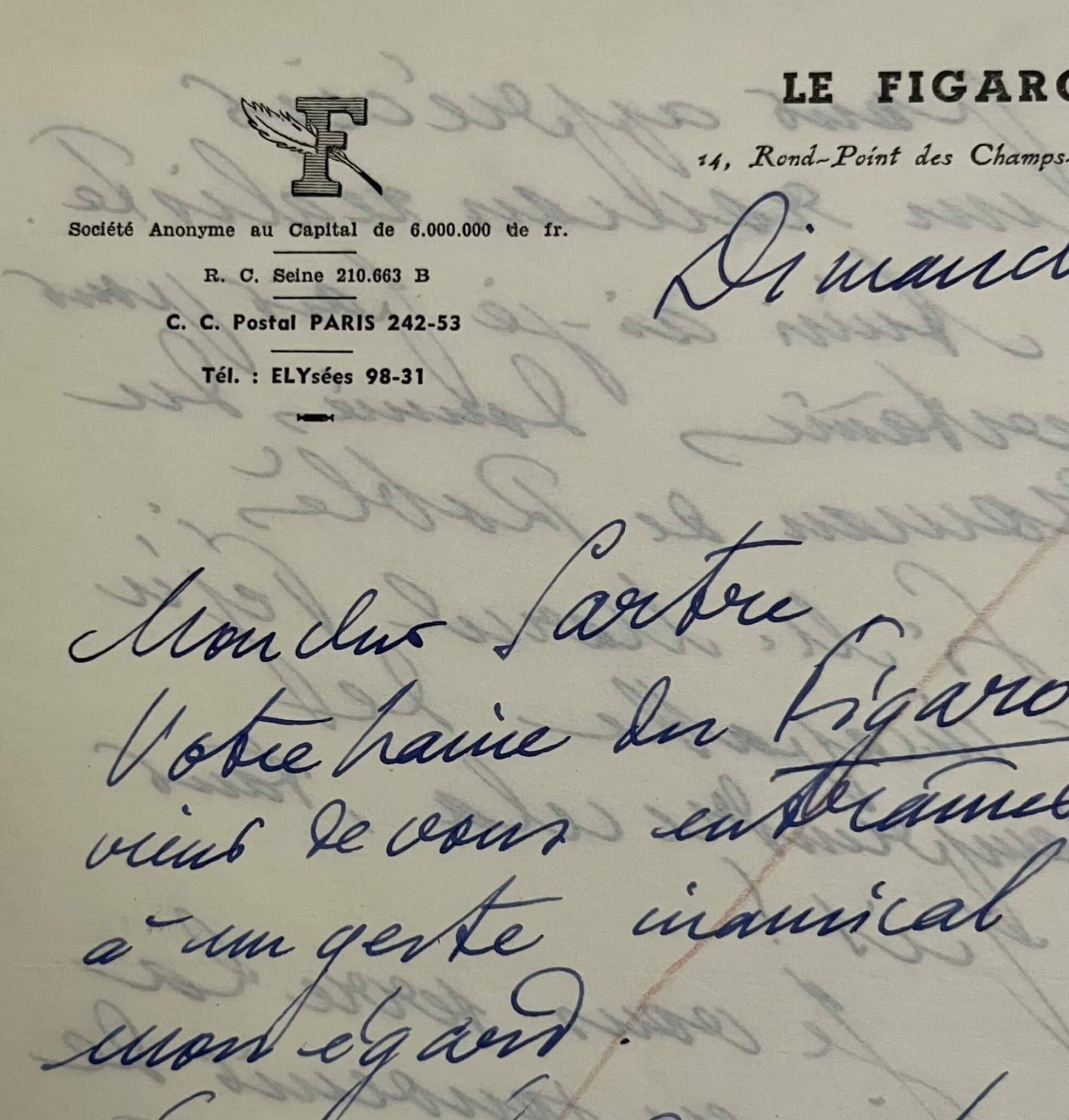 Lettre d’André Billy à Sartre : « Votre haine du Figaro vient de vous entraîner à un geste inamical à mon égard »