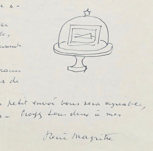 Lettre de Magritte à Yvonne Zervos illustrée de deux dessins : « Ceci est un morceau de fromage »