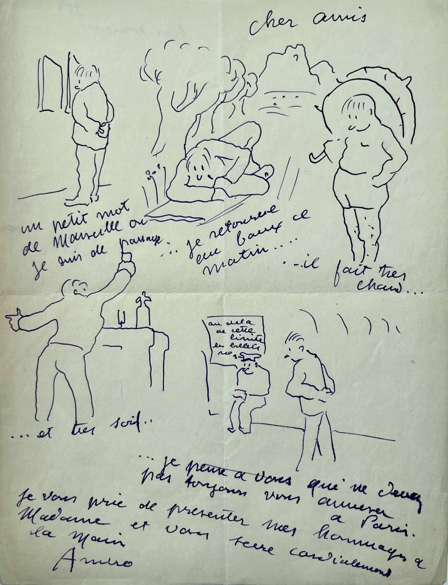 Lettre de Pierre Ambrogiani illustrée de 5 dessins