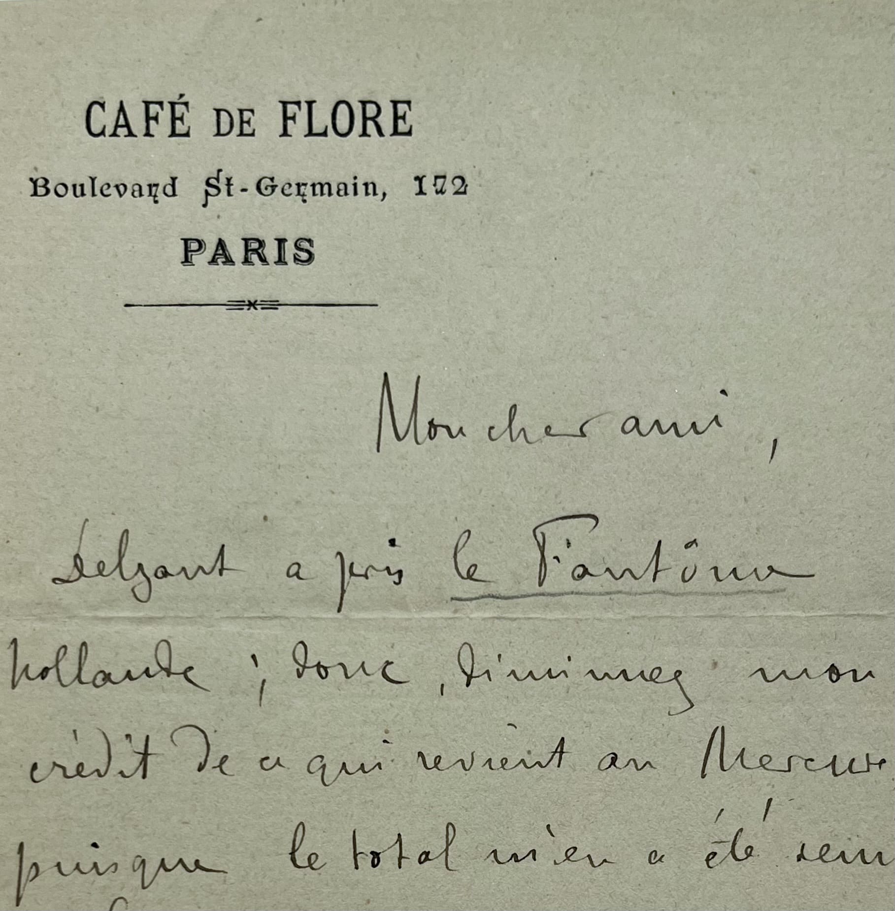 Lettre de Rémy de Gourmont écrite du Café de Flore
