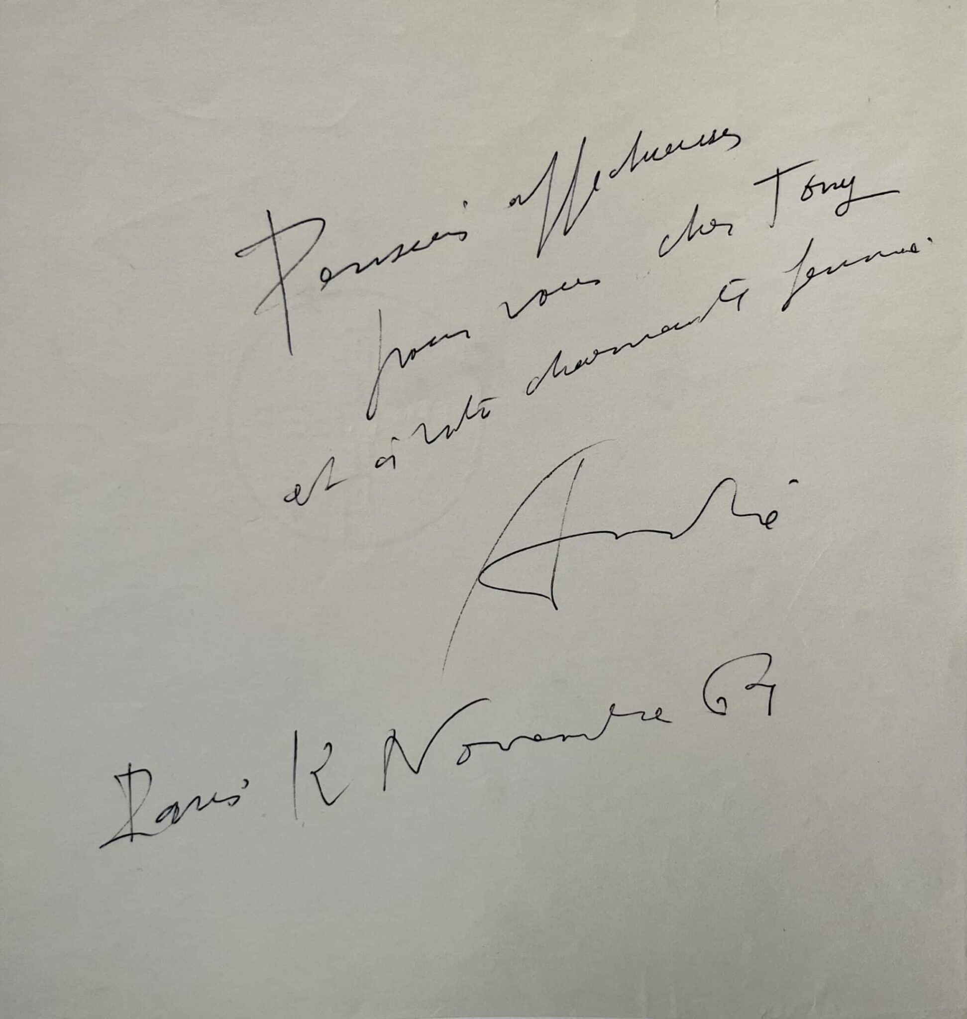 - une autre L.A.S. d'André Masson au même : « Pensées affectueuses pour vous cher Tony et à votre charmante femme ». Paris, 12 novembre 1964.