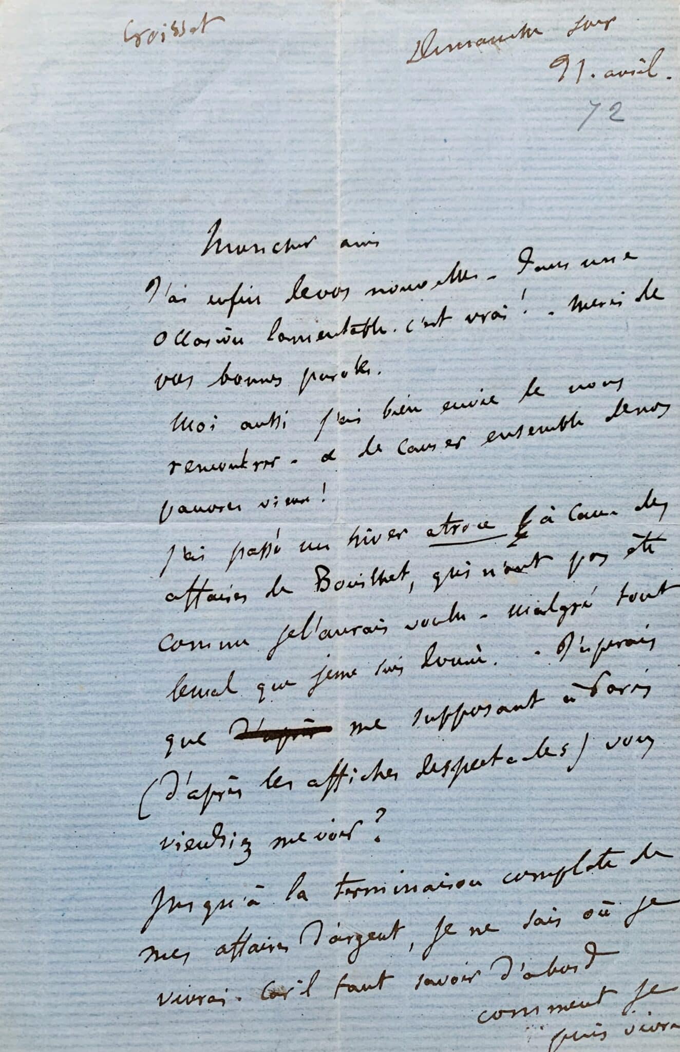 Au mois de mai, je ferai sans doute un petit voyage à Paris. Je vous écrirai un mot pour vous prier de venir. D’ici là je vous embrasse.