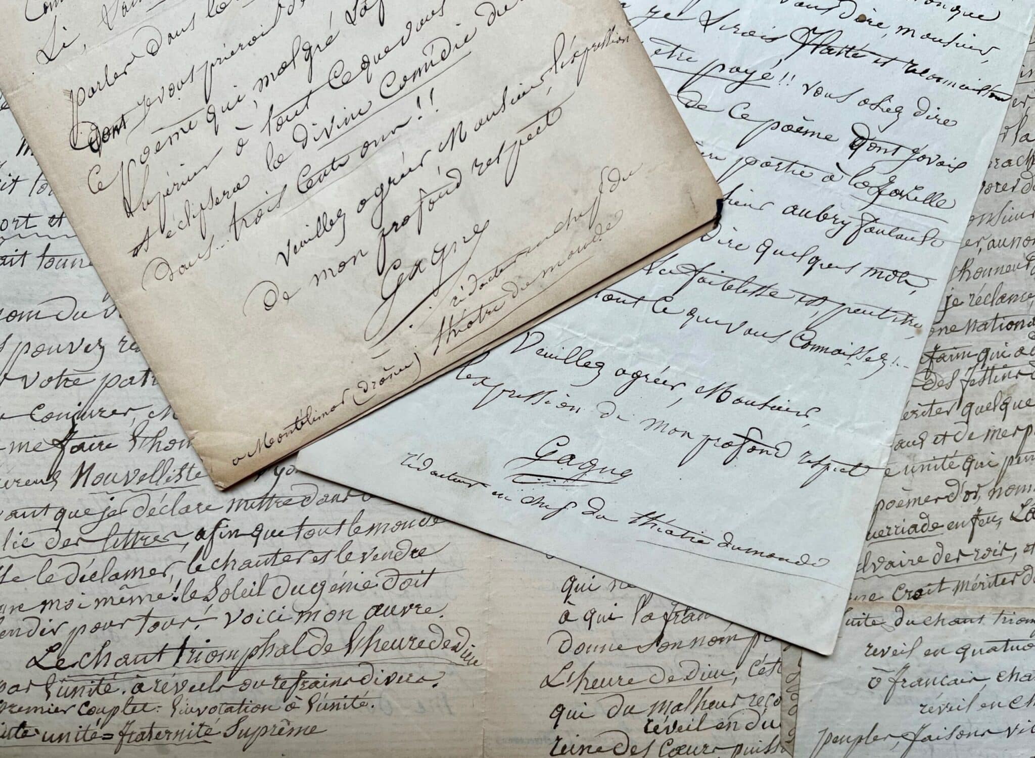 Paulin Gagne (Montoison , 1808 /1876)Le fou littéraire Paulin Gagne envoie L'Unitéide, son poème de 25 000 vers en 60 actes, et prie son correspondant d'en dire, ne serait-ce qu'un seul mot, dans son journal. Son second courrier annonce la même oeuvre mais "complétée de vingt mille vers et onze chants" avec la même requête.