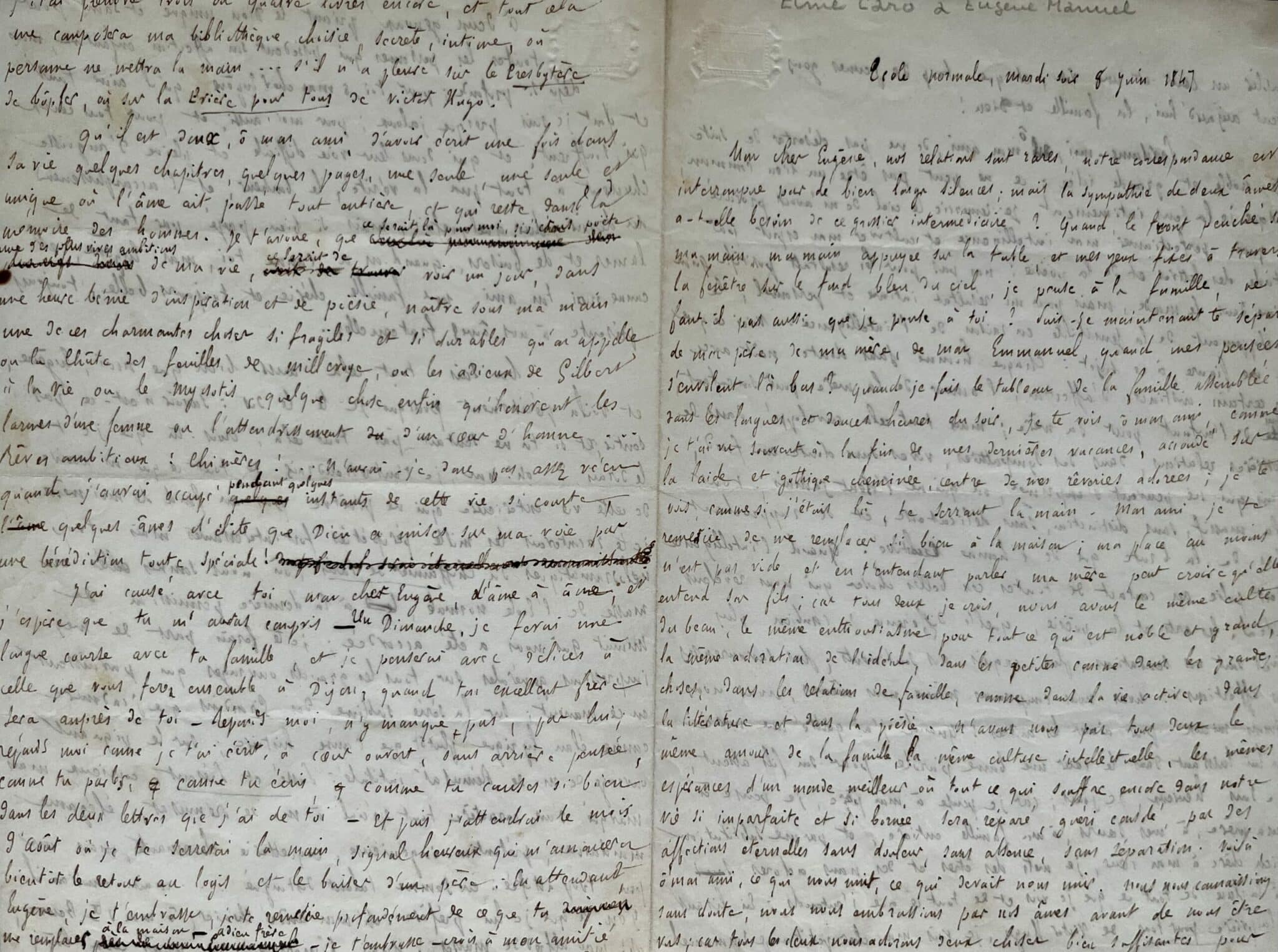 Magnifique lettre d’Elme Caro à Eugène Manuel : l’amitié, l’amour, la famille, la culture et la littérature