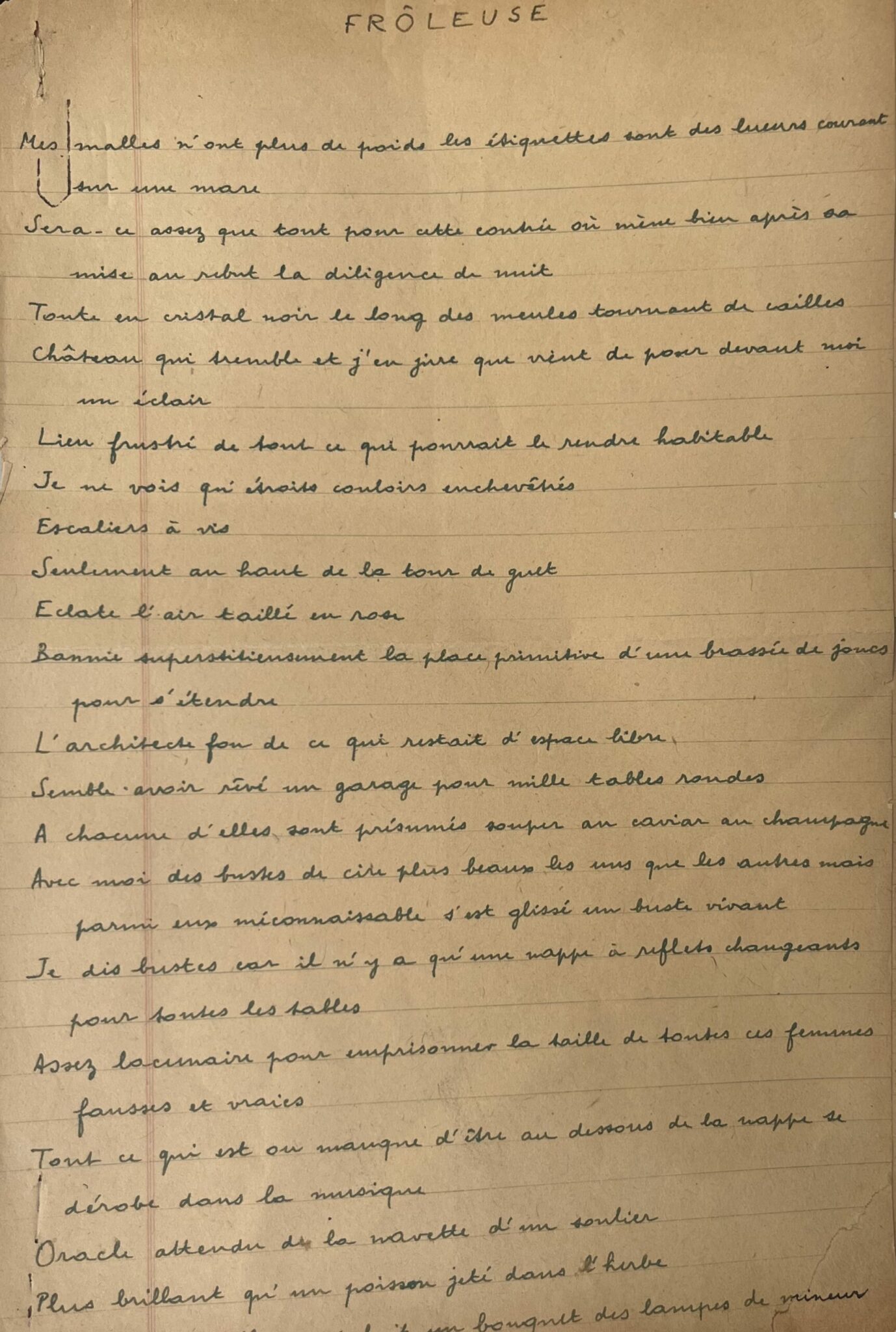 Manuscrit d’un long poème d’André Breton intitulé « Frôleuse », écrit à New York en 1942