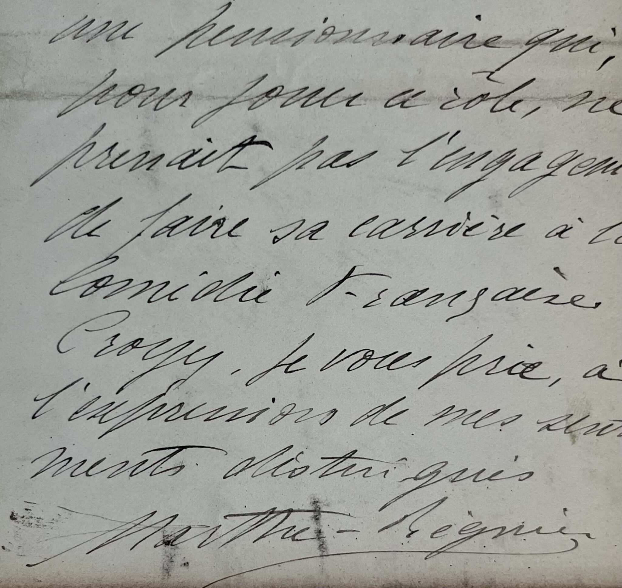 "Non, je n’ai pas pris, en un an, plus de cinq mois de congé et comme le dit la note parue dans l'Echo de Paris de ce matin. J’ai dû quitter mon service pendant vingt et un jours au mois de juillet, pour une saison à Contrexéville, qui m’était formellement ordonnée. Ajoutez qu’il m’a été impossible de jouer pendant les mois de février et mars, vous voyez que nous sommes bien loin du compte ! Je n’aurais pas mieux demandé que de reprendre mon service en avril, mais Monsieur Claretie [l'administrateur de la Comédie française] a jugé qu’il ne convenait pas de confier un rôle important à une pensionnaire qui, pour jouer ce rôle, ne prenait pas l’engagement de faire sa carrière à la Comédie-Française. Croyez, je vous prie, à l’expression de mes sentiments distingués [...]".