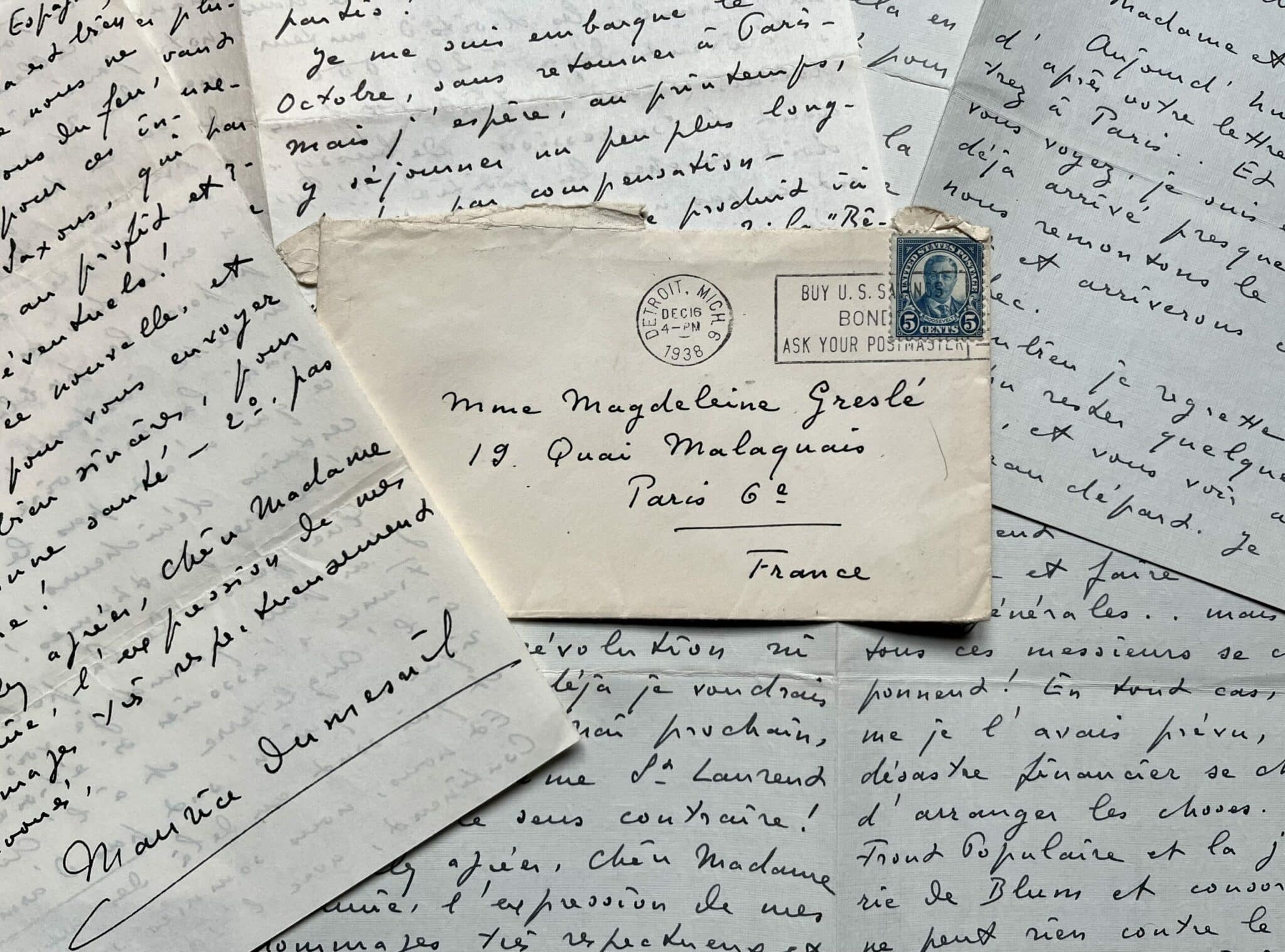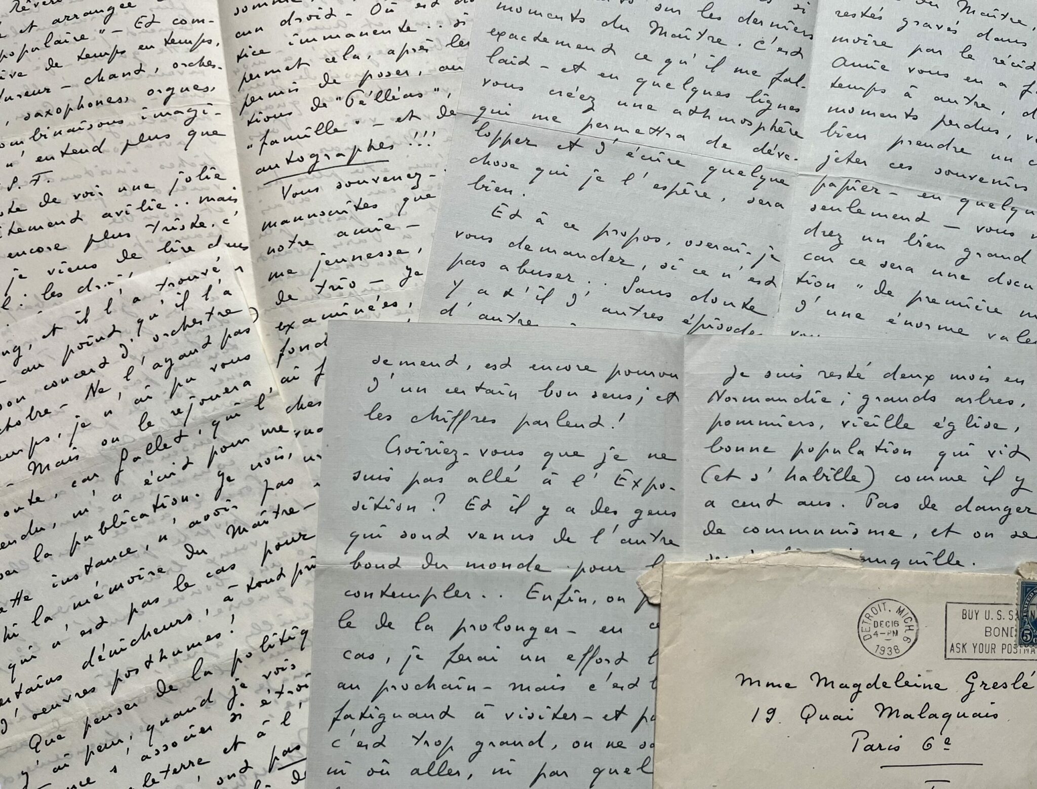 -1938, à Highland Park où il vivait. A propos du grondement de la Seconde Guerre Mondiale : "[...] En Normandie, l'atmosphère était devenue irrespirable [...] en raison des milliers de réfugiés du Nord, qui arrivaient et répandaient des nouvelles les plus irrespirables ! Personnellement, je n'ai jamais cru à cette guerre". Il a vu à Caen des affiches invitant les habitants à "évacuer" les lieux.