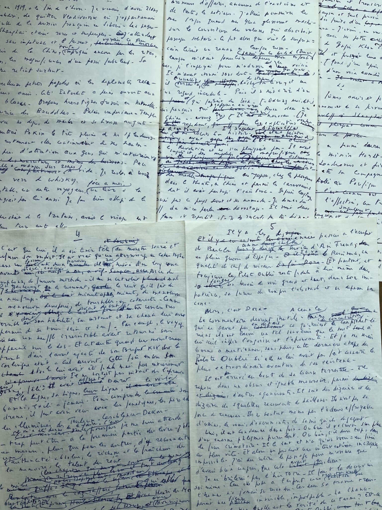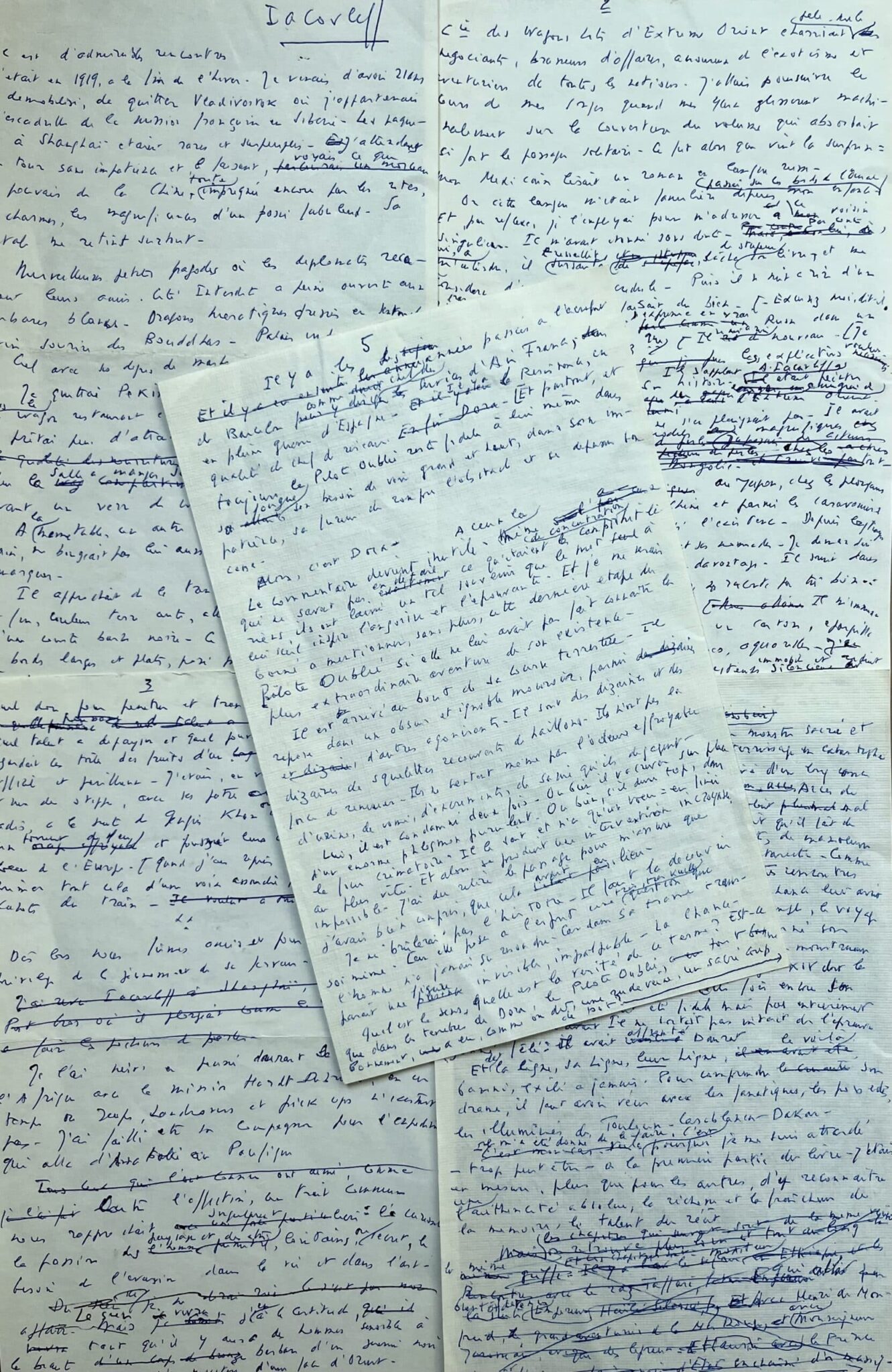 Joseph Kessel (Clara, 1898/1979)Brouillon du texte de Joseph Kessel pour l'introduction à l'exposition Alexandre Iacovleff, qui se déroula à Paris, galerie Vendôme, en 1965. Ajouts, ratures et corrections.