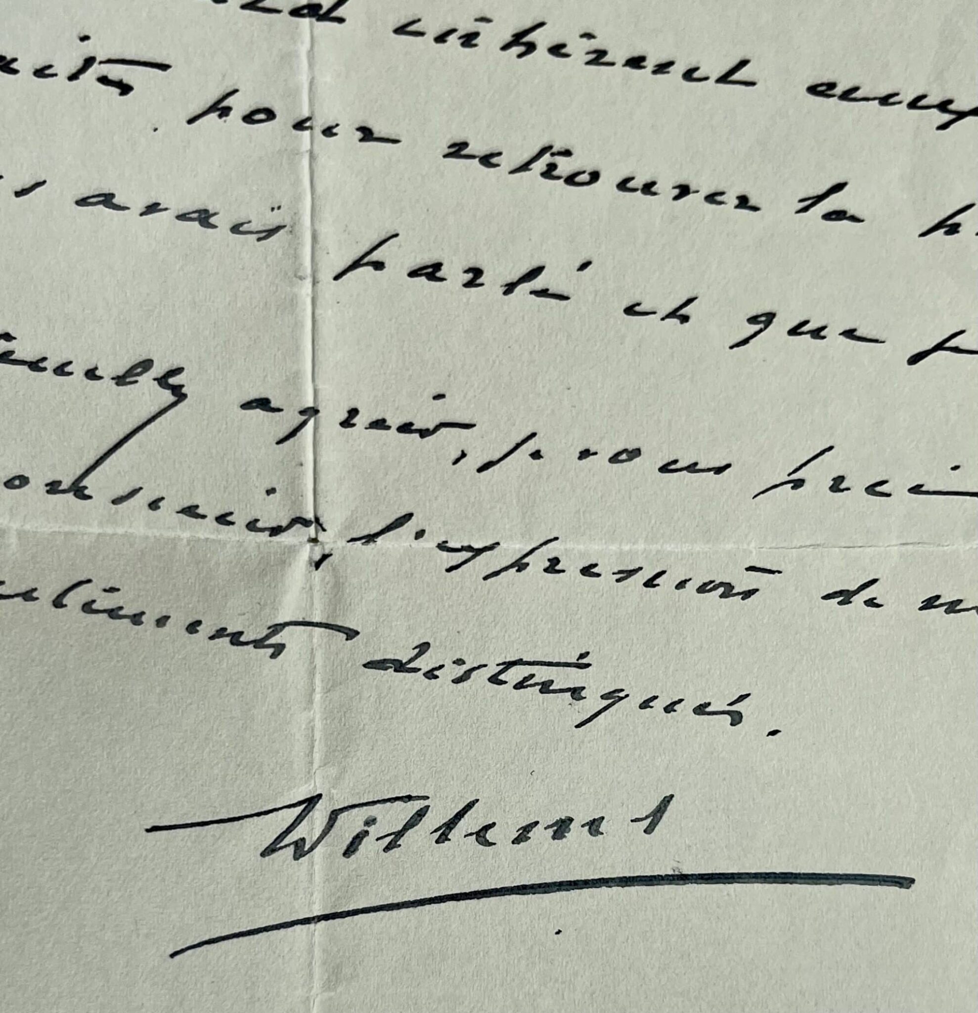 Petit dossier sur Clemenceau et son "fanion" ; il comprend : une photographie d'époque (7,2 x 10 cm, tirage assez pâle), une lettre d'envoi signée "Willems", et deux notes explicatives.