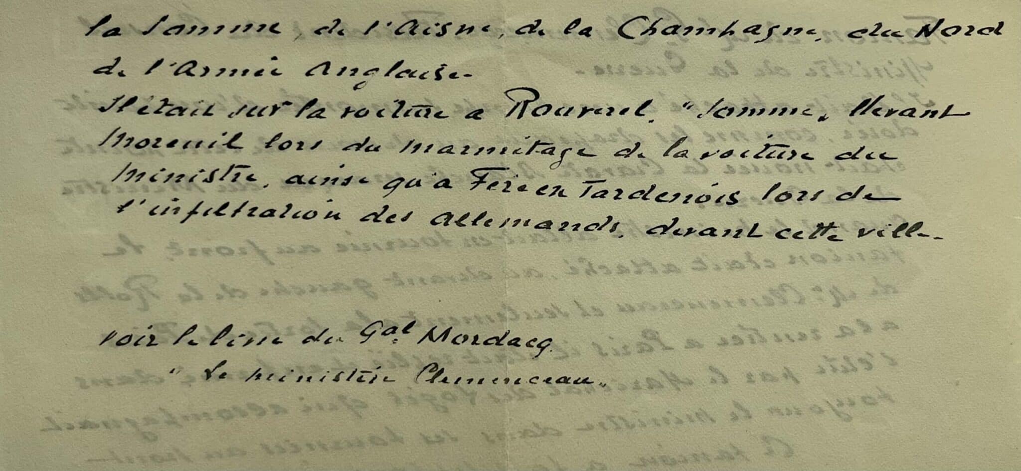 Photographie inédite de Georges Clemenceau au QG de Foch en mars 1918 avec notes explicatives