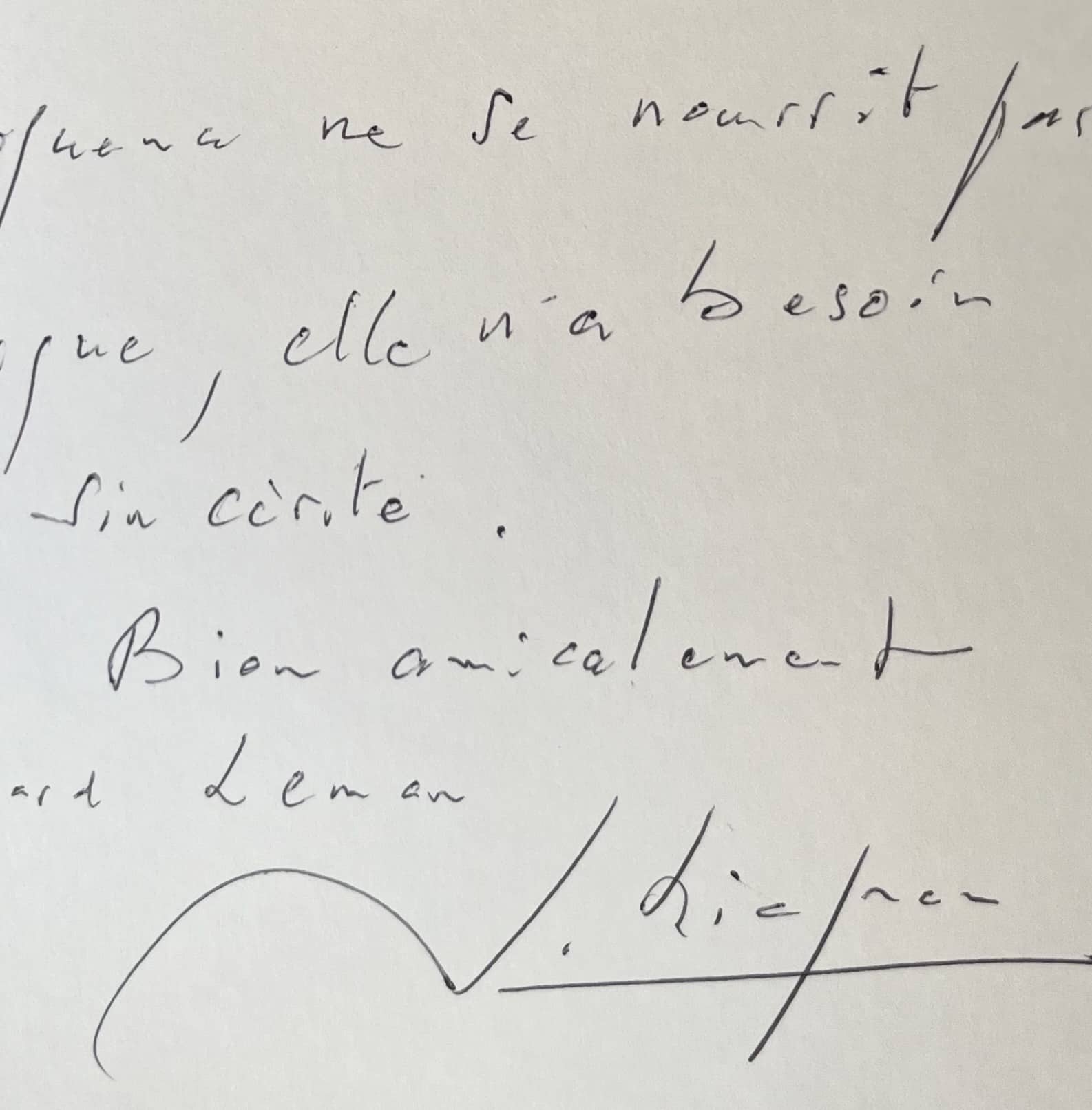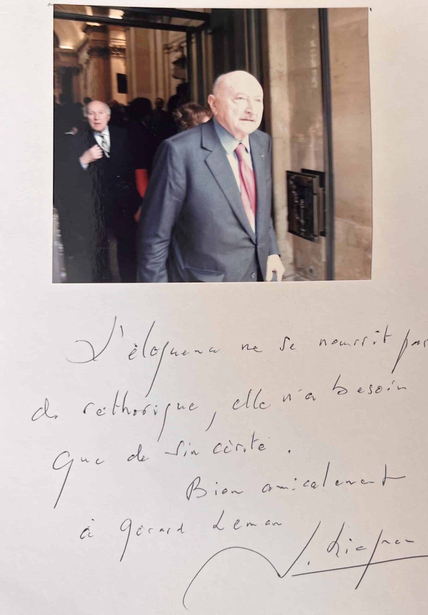 Sous une photographique originale le représentant, montée sur bristol, Georges Kiejman a écrit cet bel aphorisme :