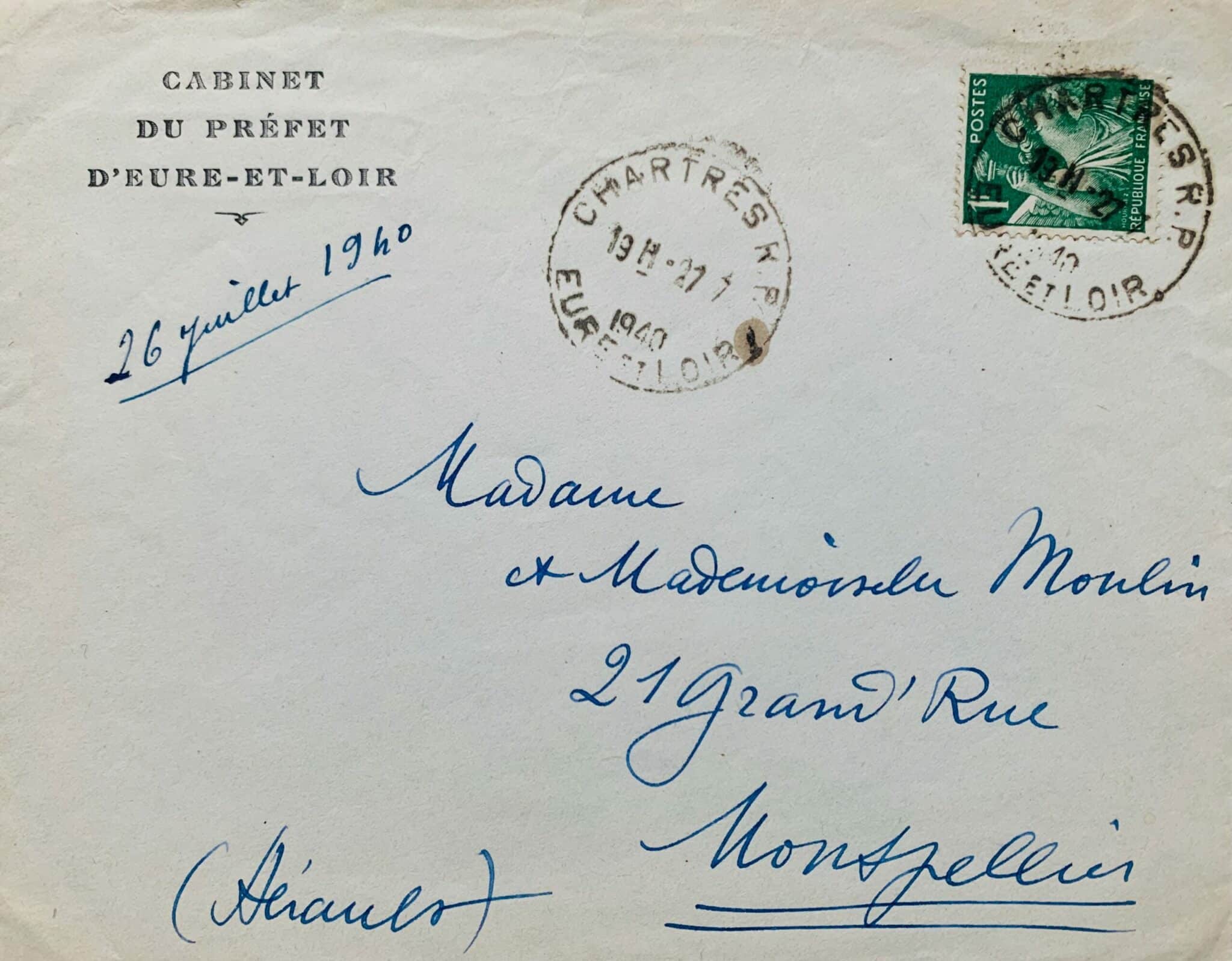 Rare lettre de Jean Moulin de juillet 1940