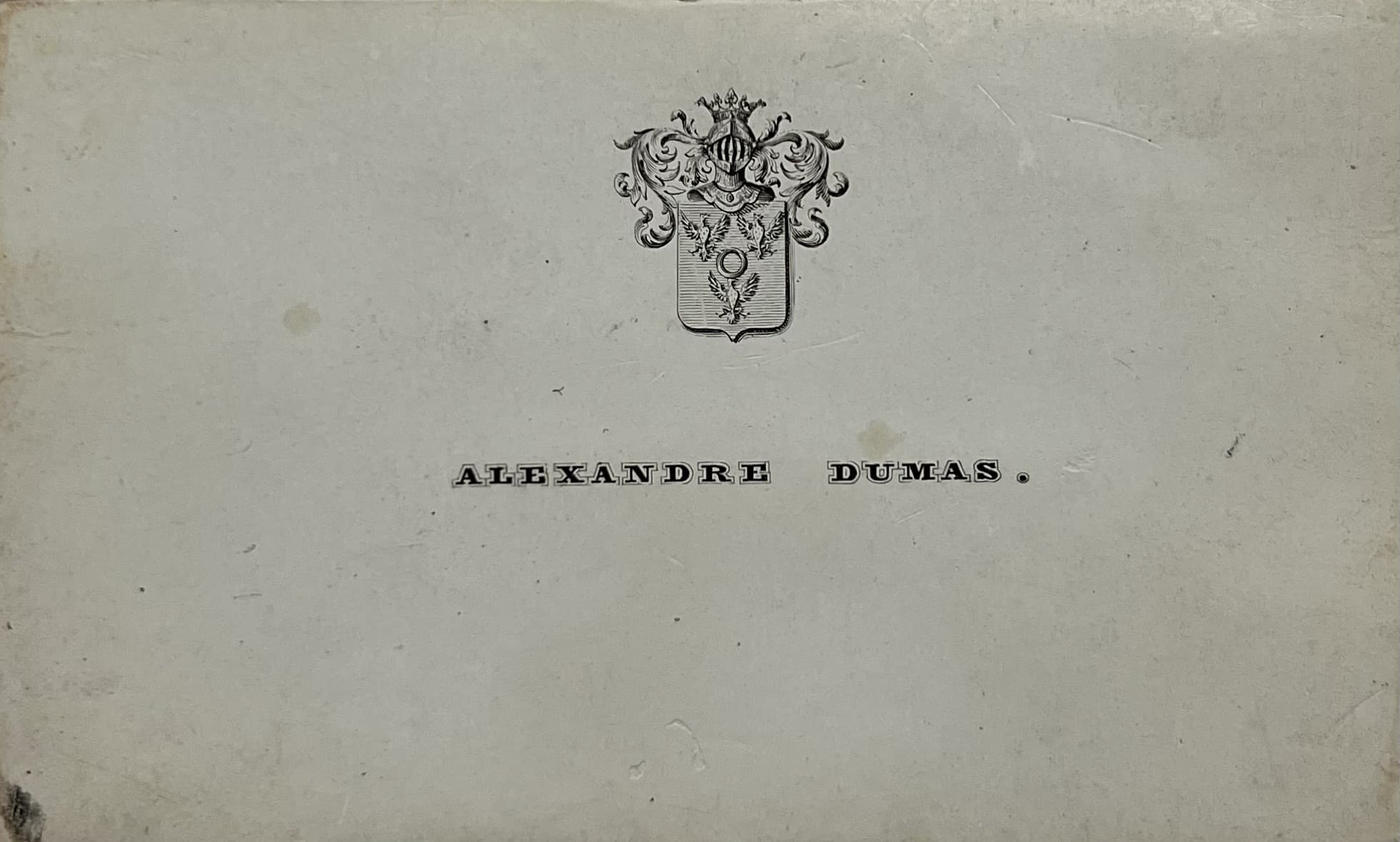 Au dos de sa carte de visite (portant simplement son nom et ses armes), Alexandre Dumas (père) a inscrit ces quelques lignes :