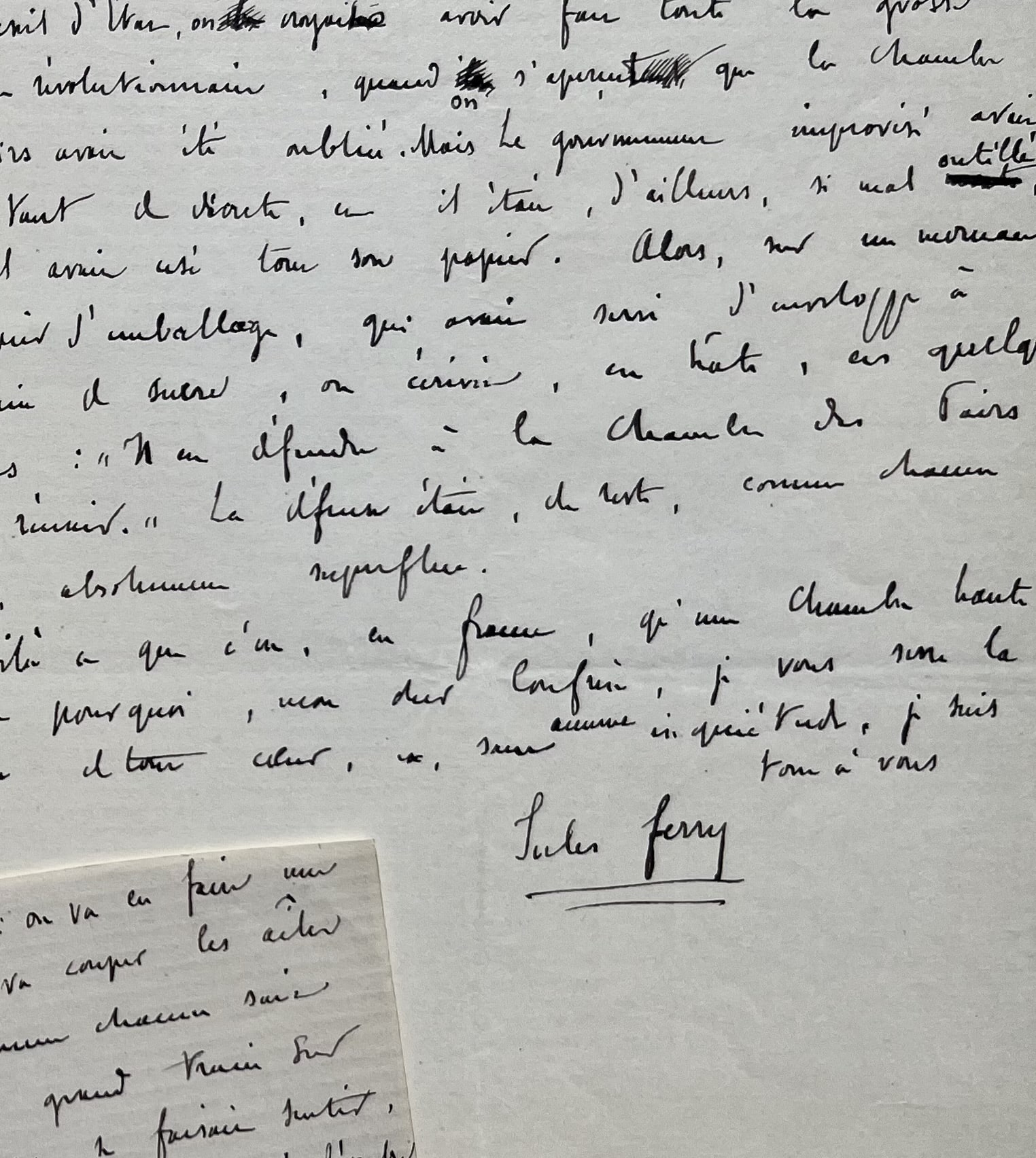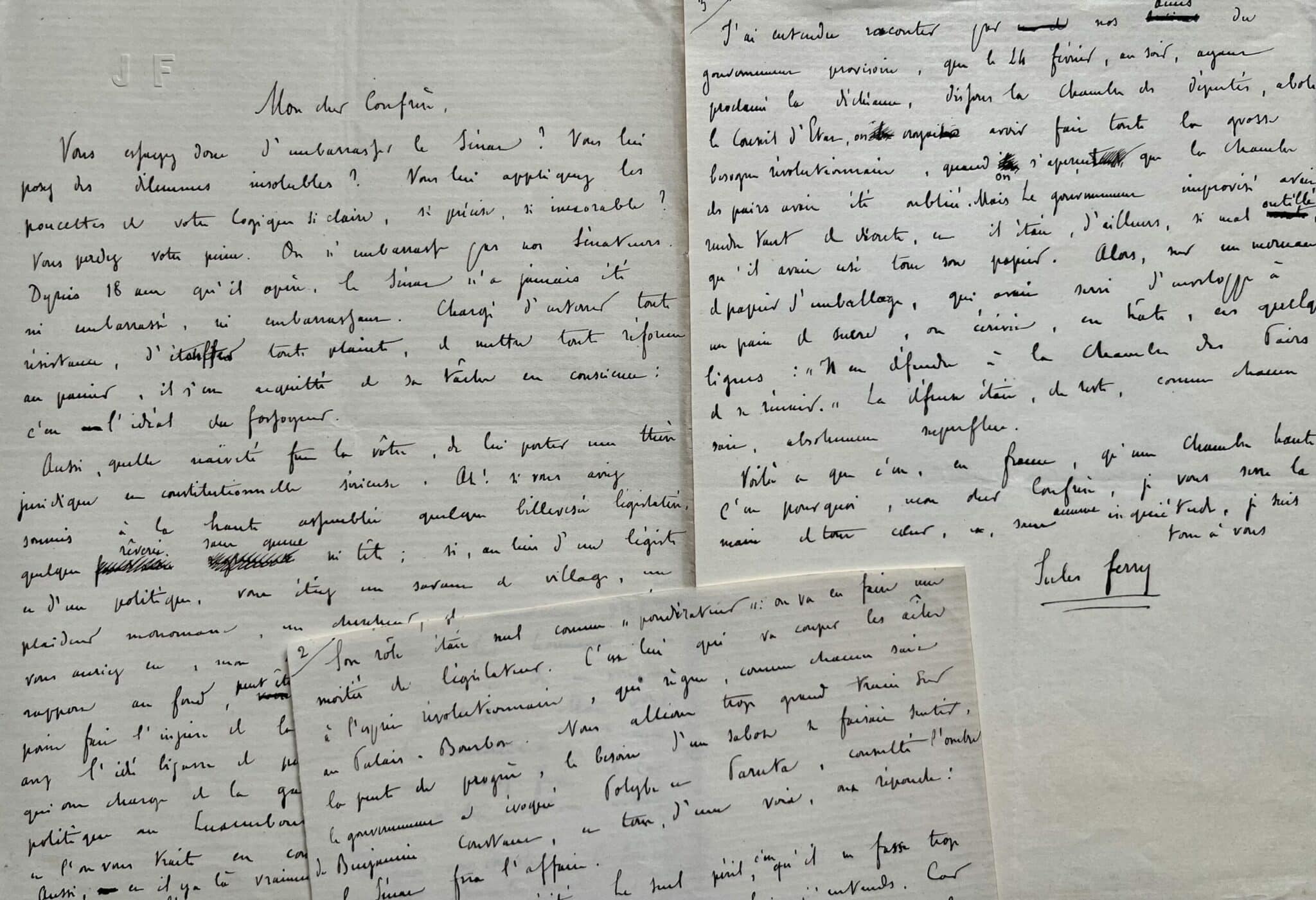 Jules Ferry (Saint-Dié, 1832/1893)Terrible charge de Jules Ferry contre le Sénat (brouillon avec ratures, ajouts et corrections).