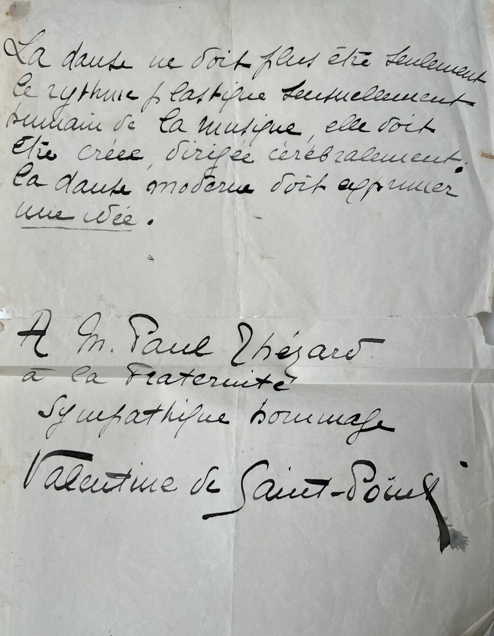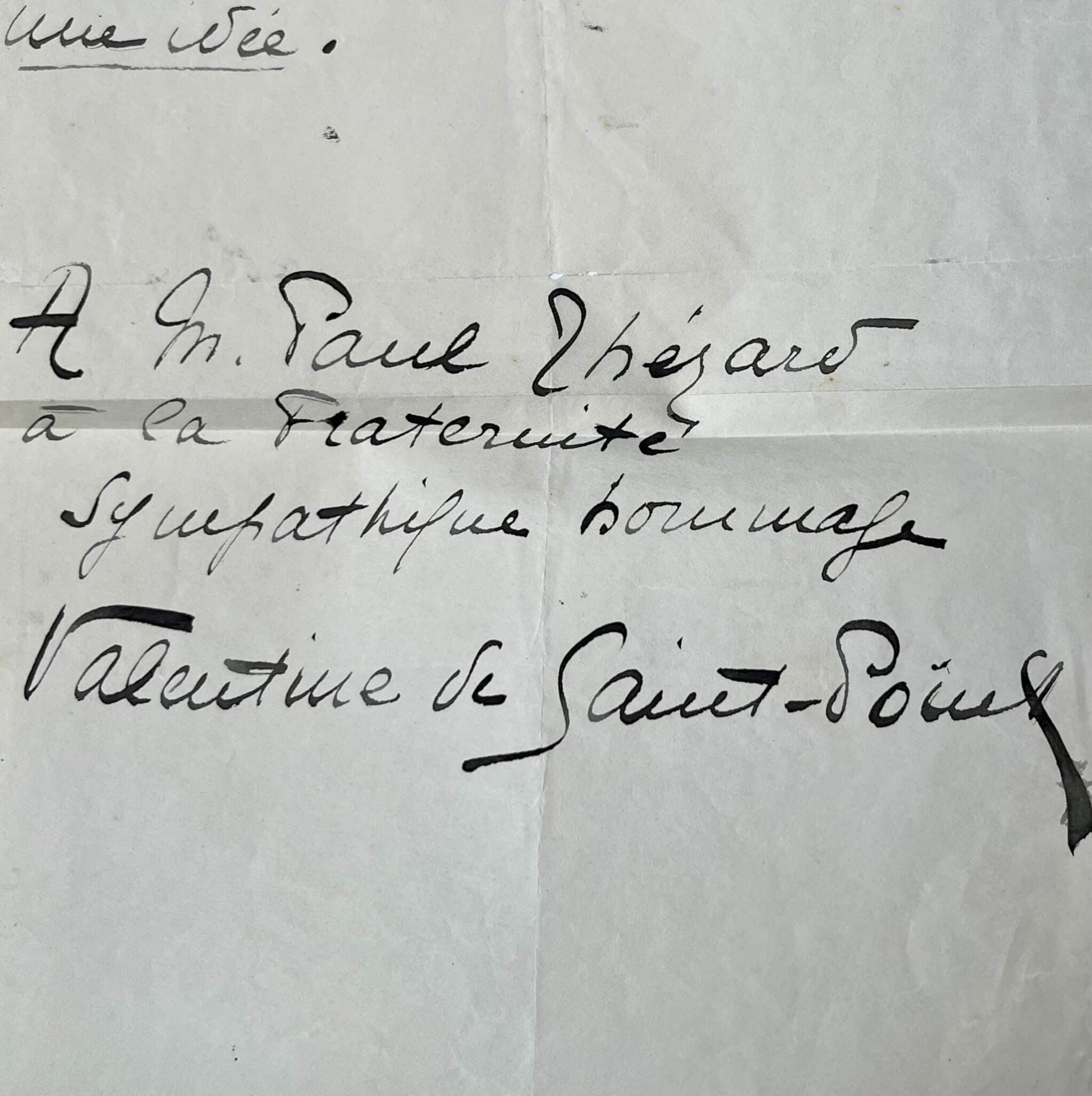 Suivi de l'envoi "A M. Paul Thérard à la fraternité sympathique hommage Valentine de Saint-Point". Grande et belle signature.