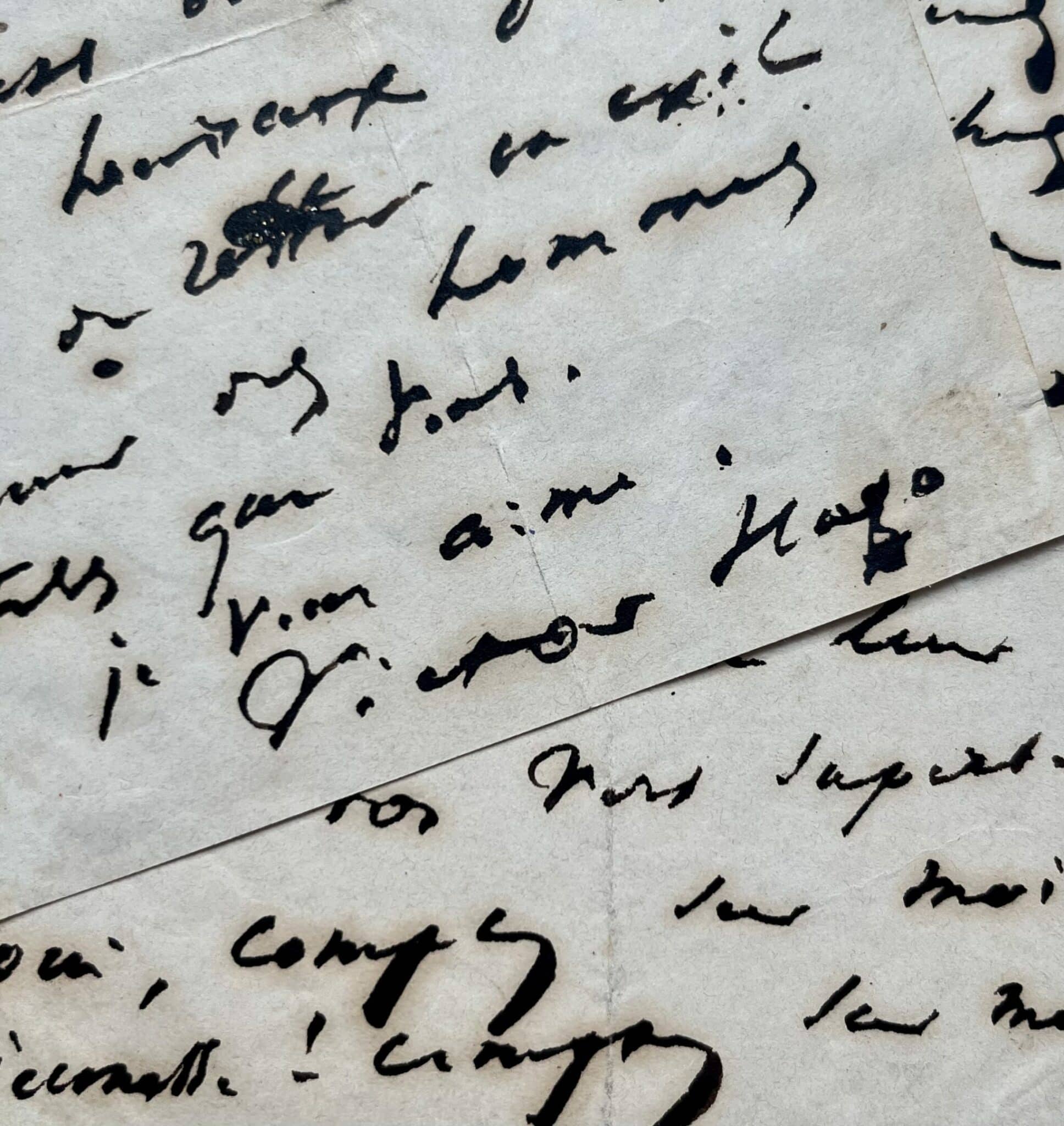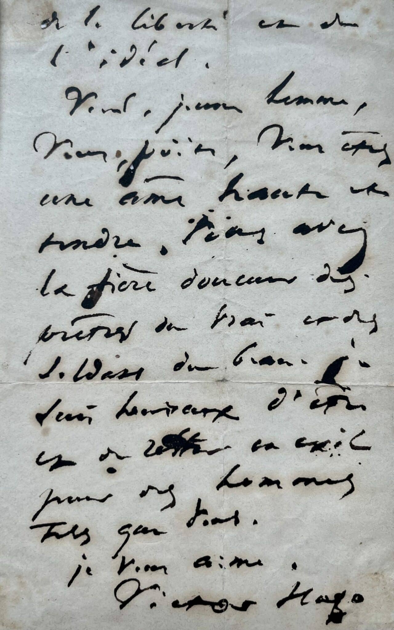 Victor Hugo (Besançon, 1802/1885)Emouvant et dithyrambique courrier de Victor Hugo, rédigé de son large trait de plume :