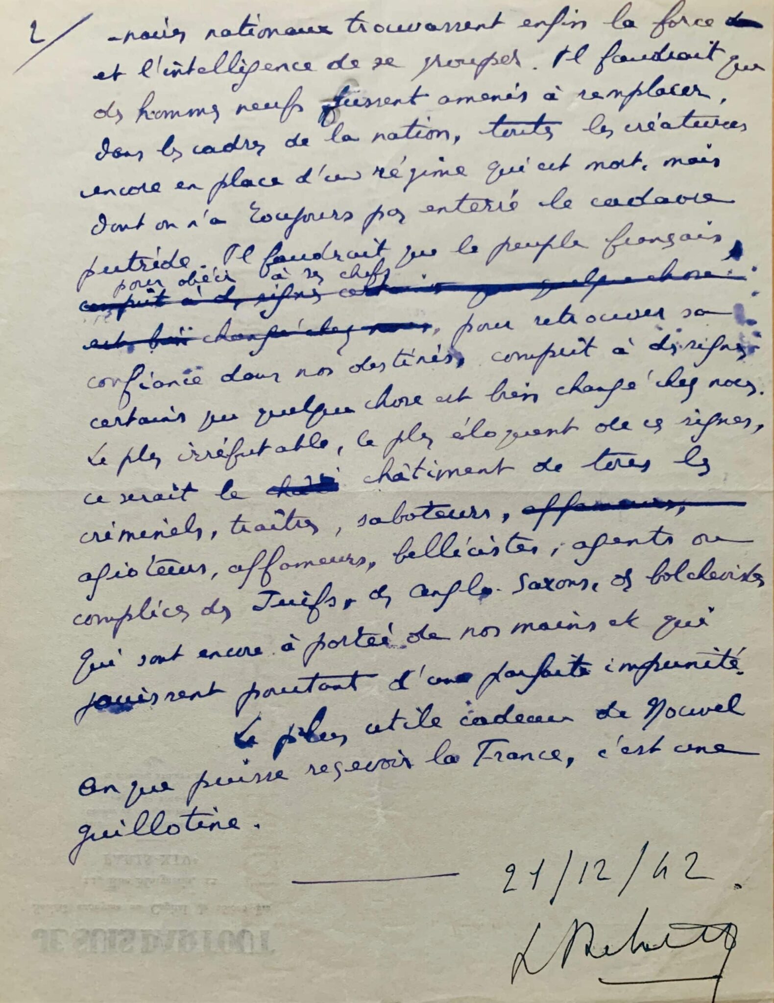 Violent texte de Lucien Rebatet souhaitant à la France, pour 1943, une guillotine