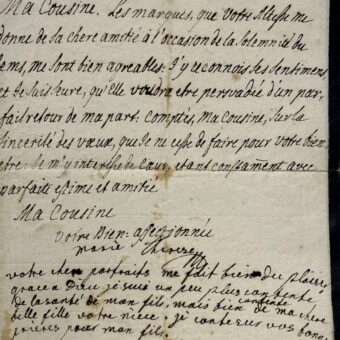 Lettre de l’Impératrice Marie-Thérèse d’Autriche avec 5 lignes autographes
