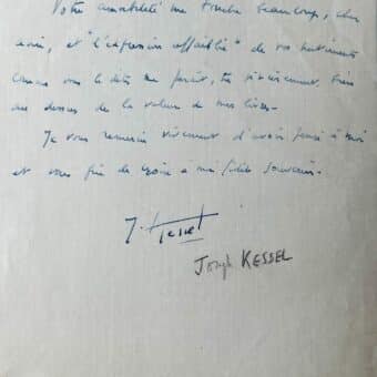 Pour Joseph Kessel : « l’expression affaiblie de vos sentiments [est] bien au dessus de la valeur de mes livres »