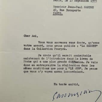 Gaston Gallimard annonce à Jean-Paul Sartre qu’il veut publier « La Nausée » en Livre de Poche, à l’instar du « Mur »