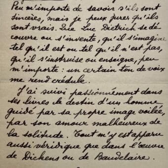 Paul Eluard compare la sincérité d’écriture de Luc Dietrich à Dickens et Baudelaire