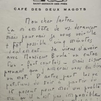 Lettre de R.J. Chauffard à Sartre, avec bel en-tête des Deux Magots