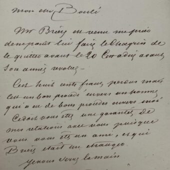 Lettre d’Alexandre Dumas Père adressée à son ami et éditeur Théodore Boulé