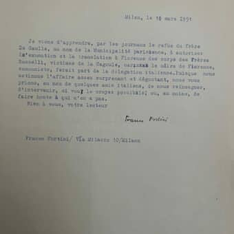 Franco Fortini demande à Sartre de « faire honte à ceux qui n’en ont pas » suite au refus de translation du corps des frères Rosselli