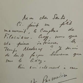 Henri Jeanson, par l’intermédiaire de Jean Cau, demande un manuscrit à Sartre pour le faire relier