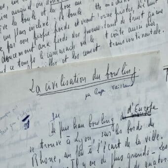 Manuscrit d’un article de Roger Vailland sur le Bowling, loisir en plein essor en Europe