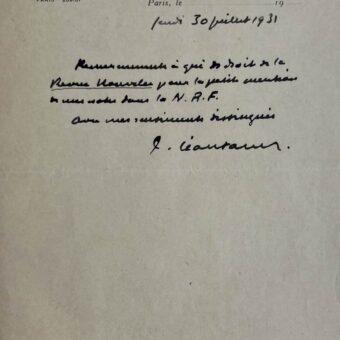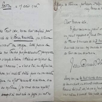 • Deux lettres de Jean-Richard Bloch sur la parution des Chasses de Renaut et La Nuit Kurde