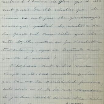 Manuscrit du « Prière d’insérer » de Simone de Beauvoir pour « Les Mandarins » qui recevra le prix Goncourt