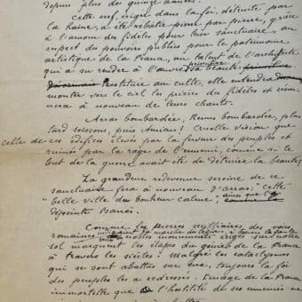 Manuscrit du discours de Pétain, prononcé à Arras, en 1934, lors de l’inauguration de la cathédrale